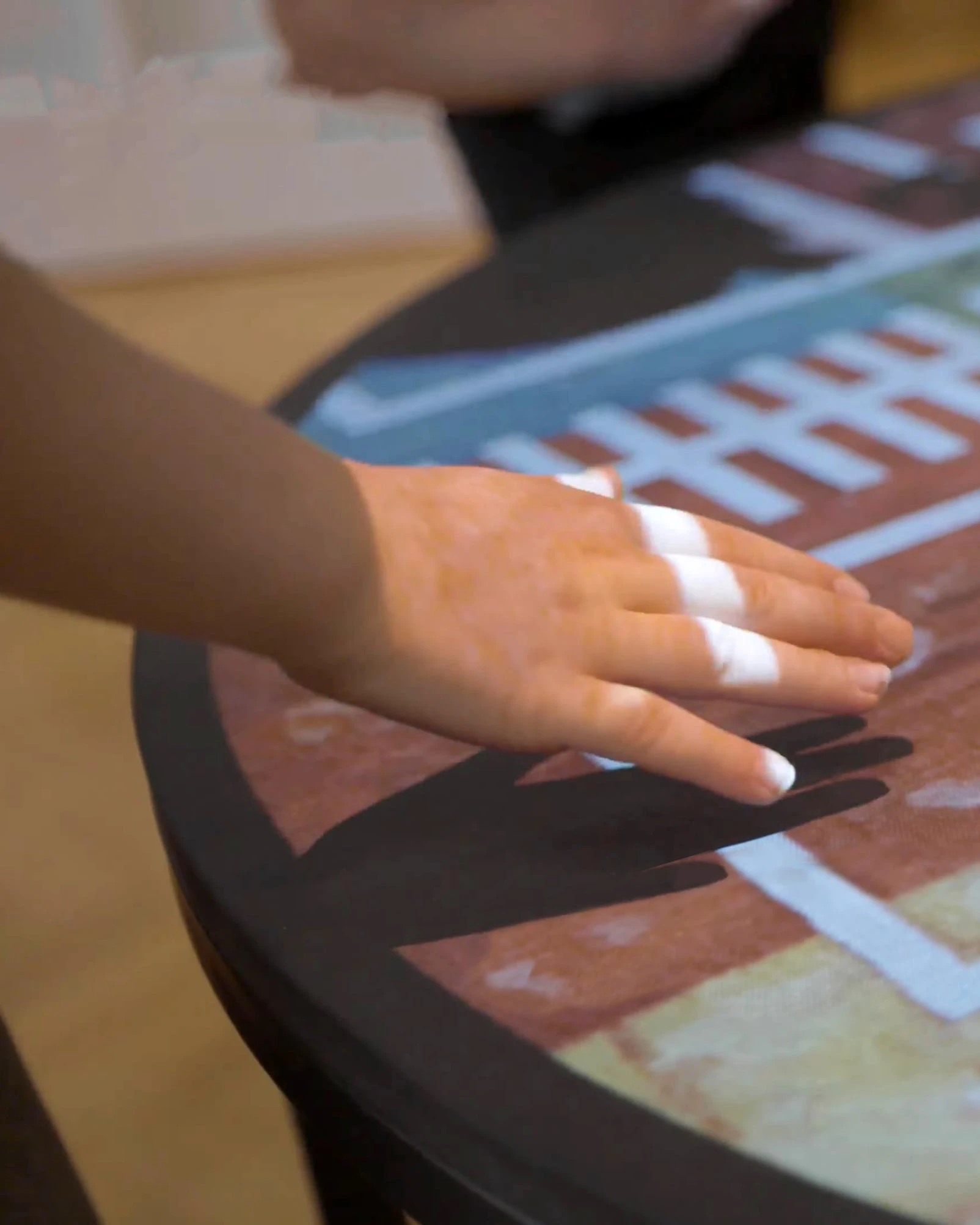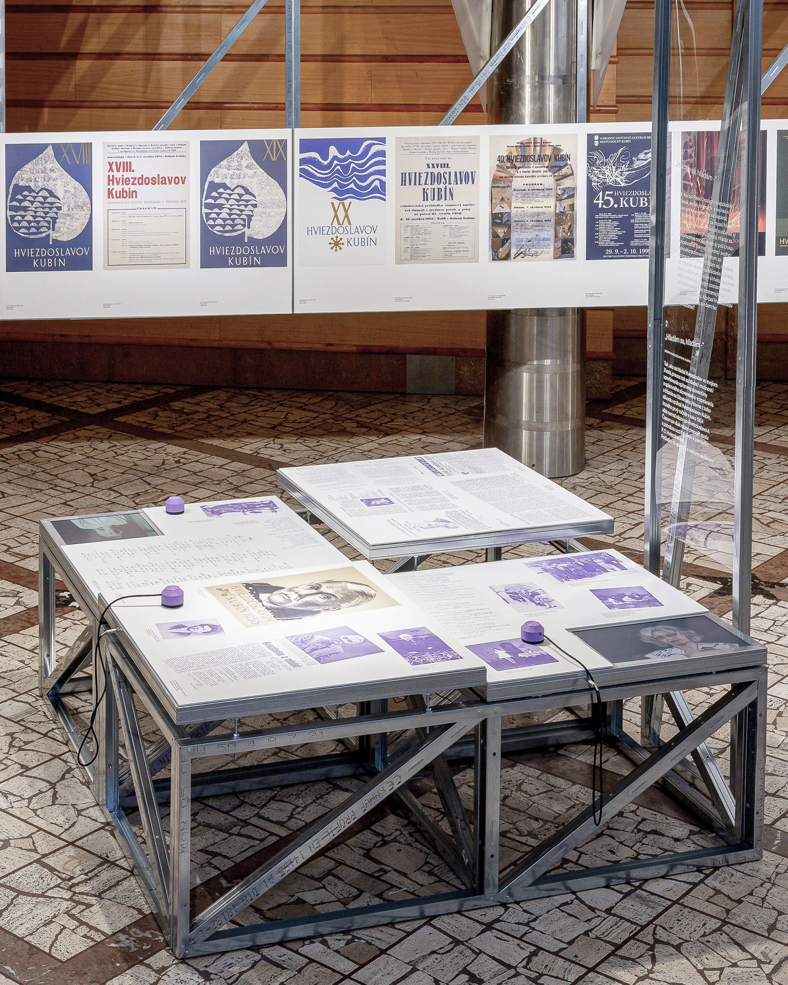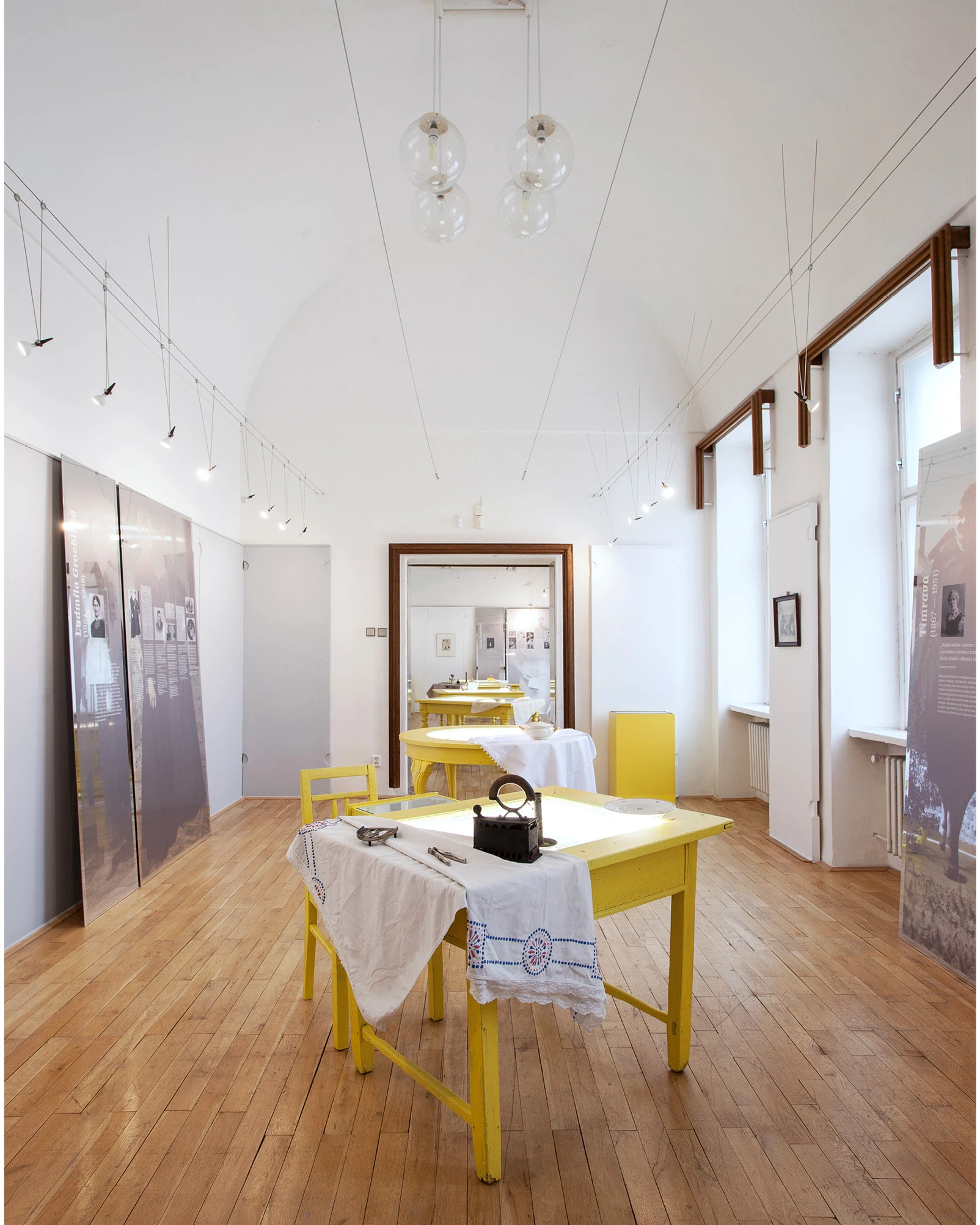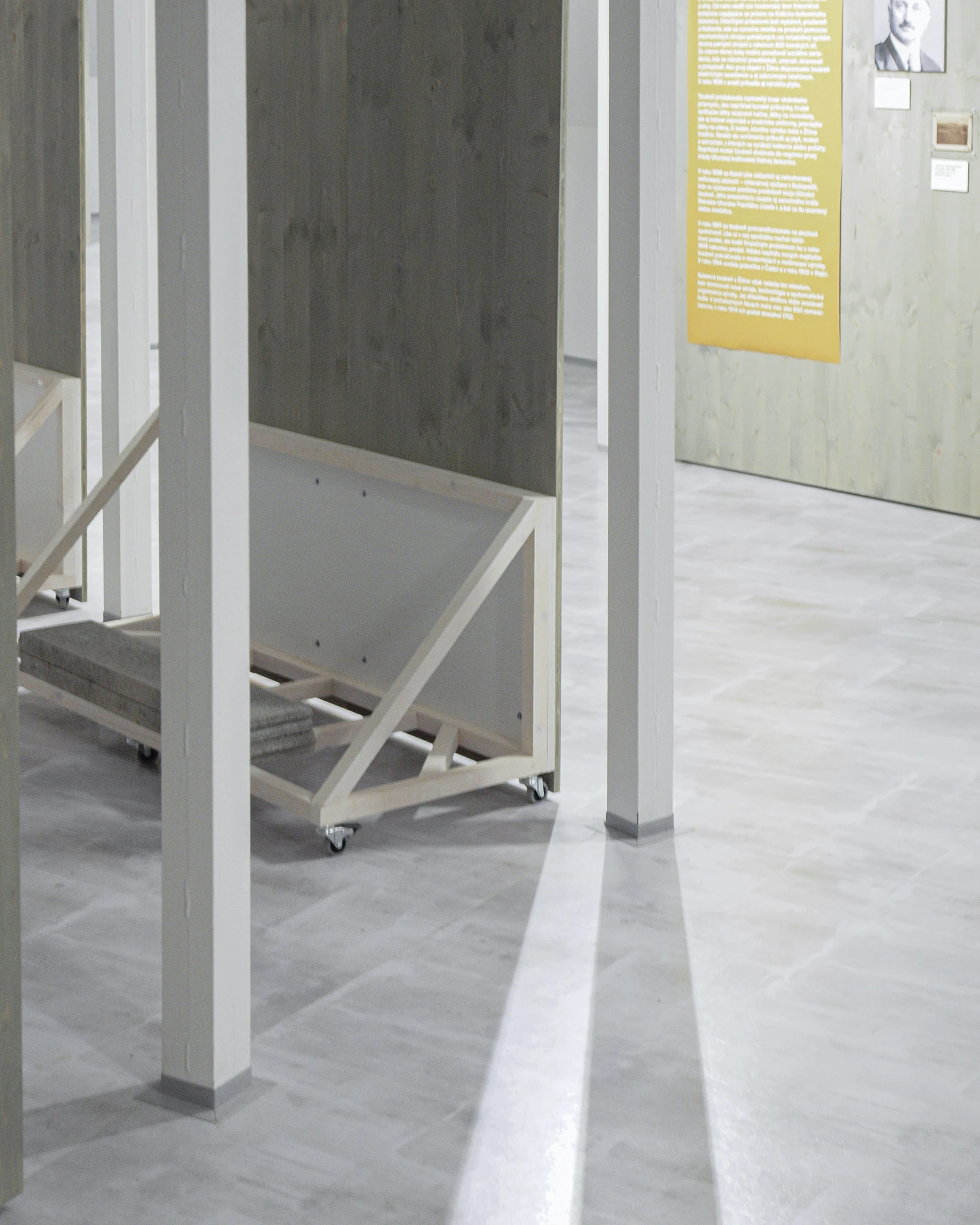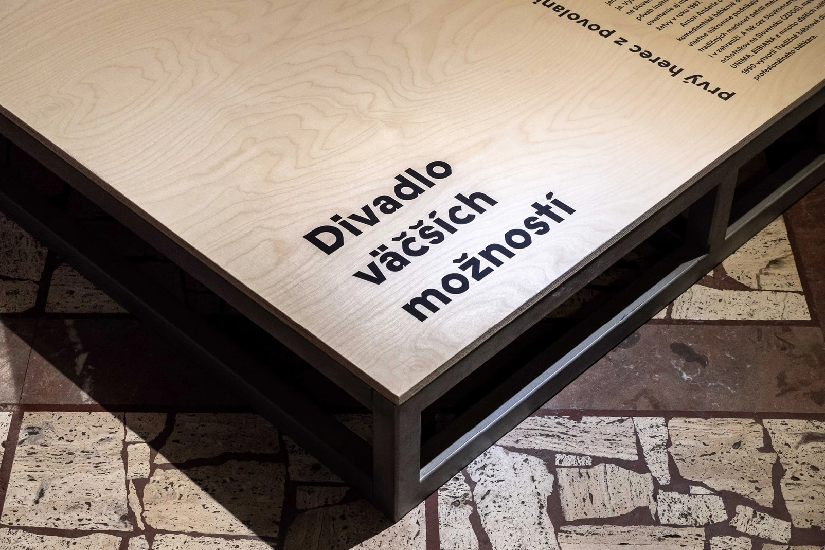 Ústredným objektom je pracovný stôl inšpirovaný ponkom, ktorý prechádza tromi miestnosťami. Vďaka výraznej farbe modrotlače sa stáva nielen výtvarným, ale aj priestorovým ťahákom expozície. Počas prehliadky stôl umožňuje prepnúť sa „zoom in“ od všeobecného k detailnému – zásuvky, vitríny, zvukové stopy, videá, mapping, interaktívne nasvietenie. Funkcia stola pokračuje aj v ďalších priestoroch cez predstenu a úložný systém. Doplnkové zóny ponúknu oddych s tabletmi pre ďalšie informácie ku každému exponátu.