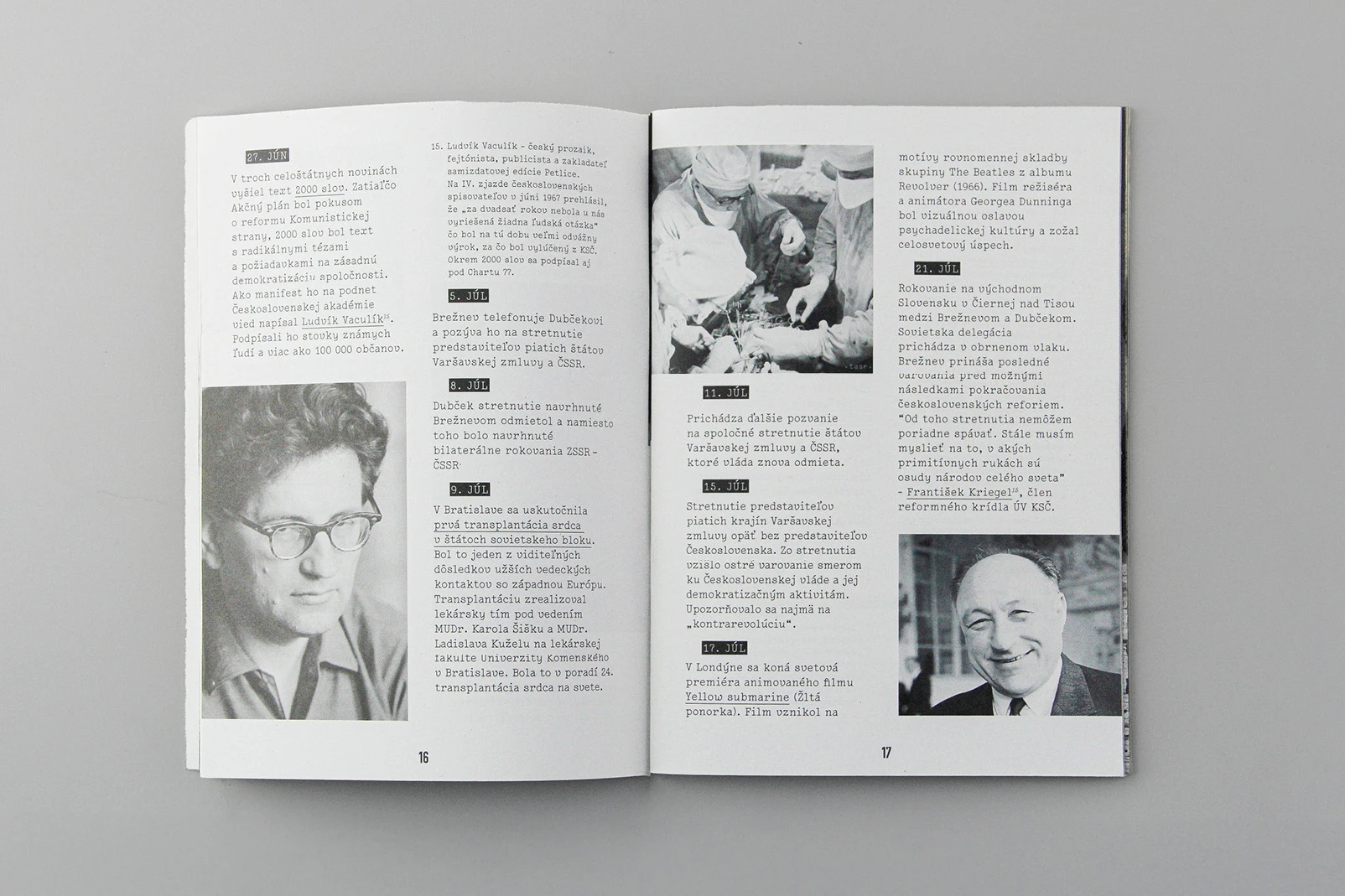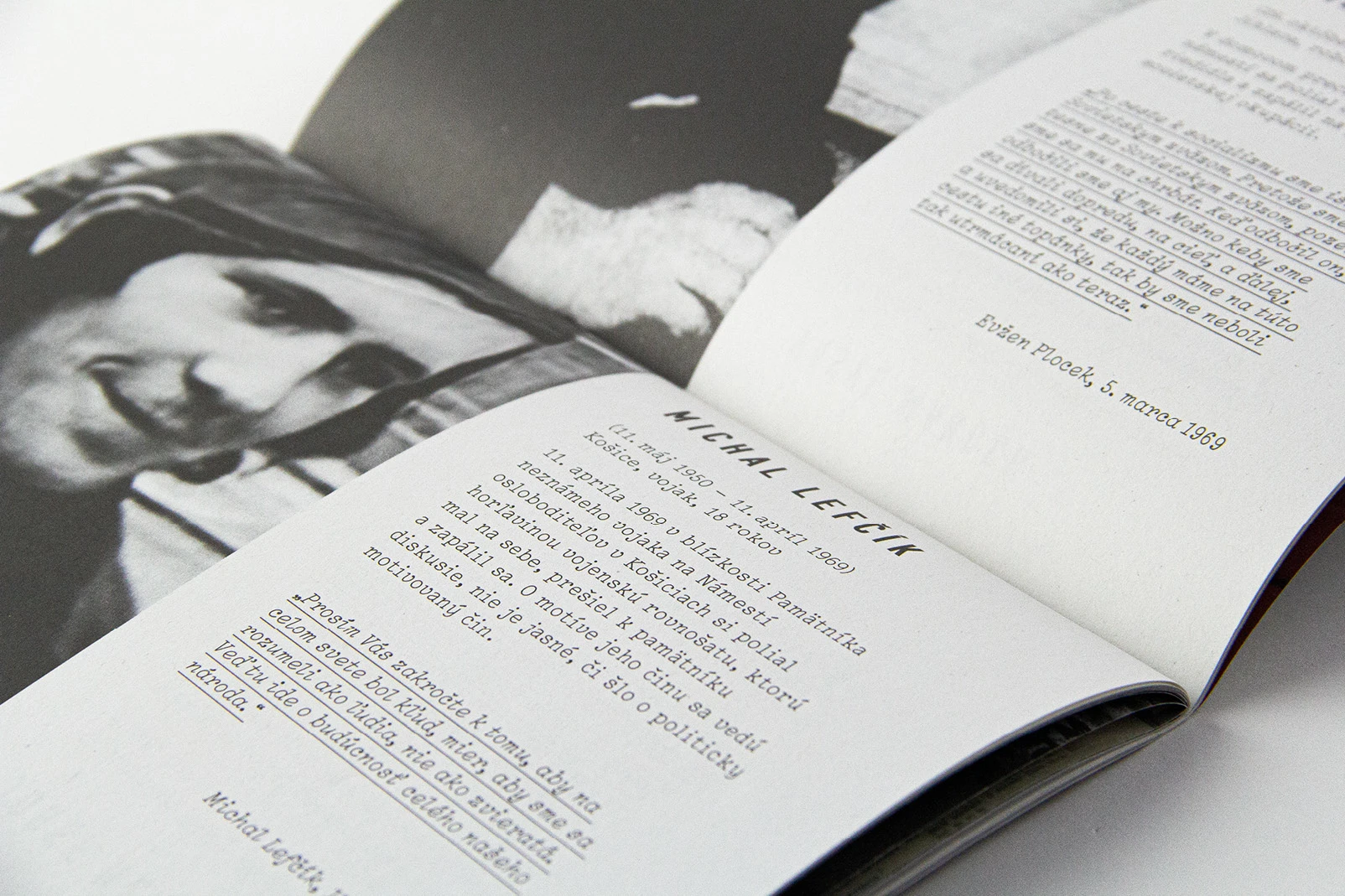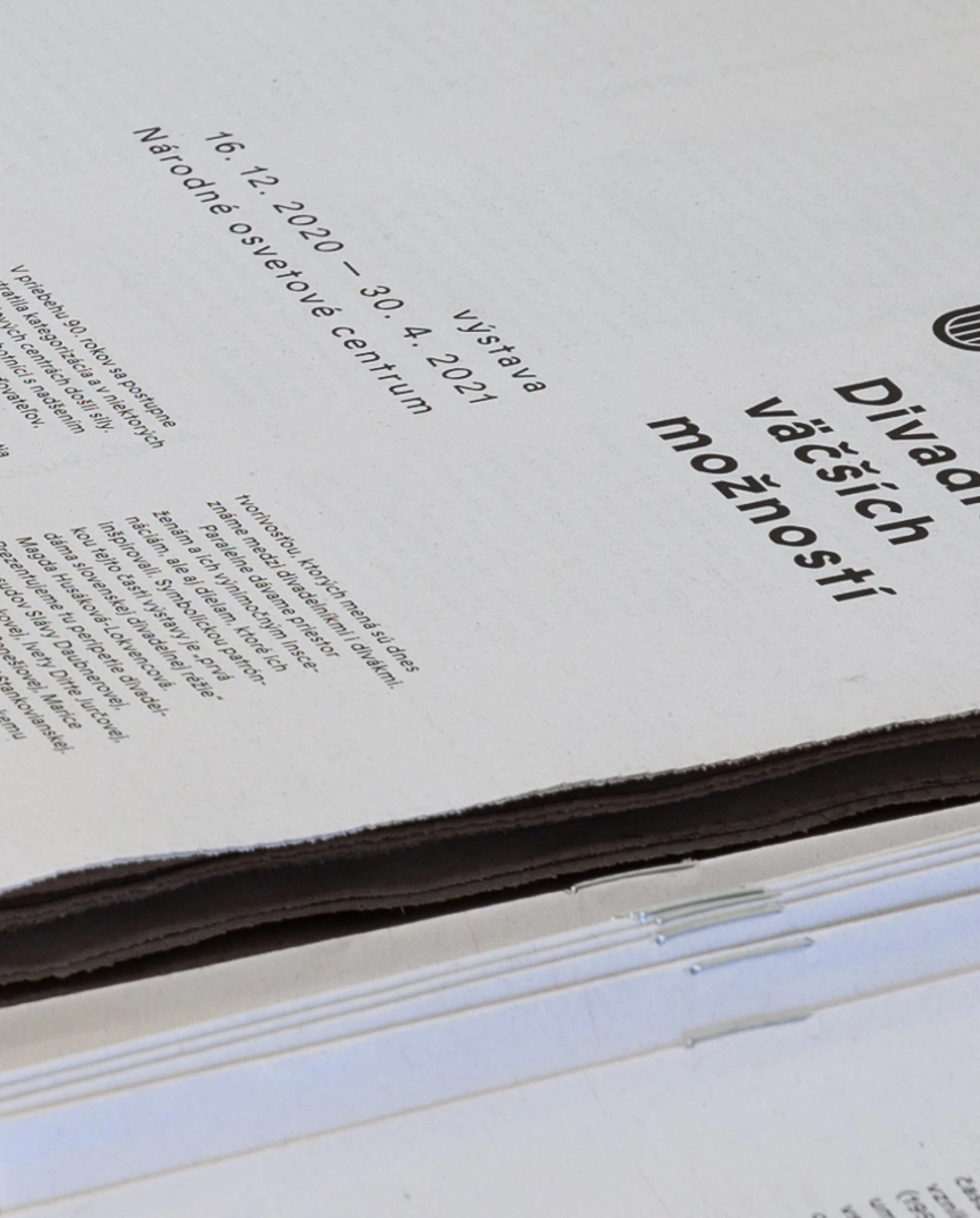 Dizajn publikácie k expozící Človek v čase a priestore. Publikácia vizuálne nadväzuje na expozíciu kontrastom bielych a čiernych plôch, pričom svietiaca obálka a vzdušný layout podporujú jej súčasný charakter.