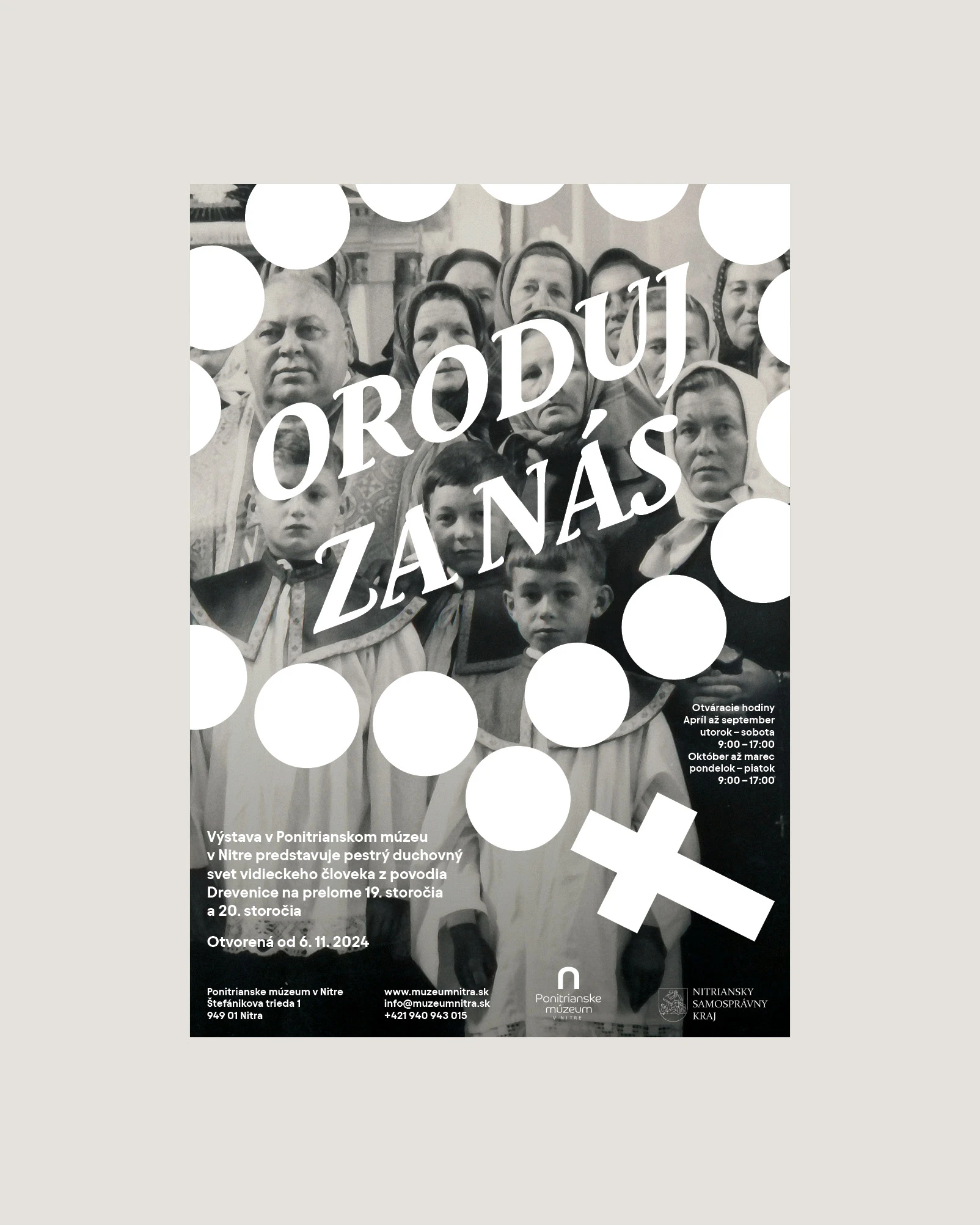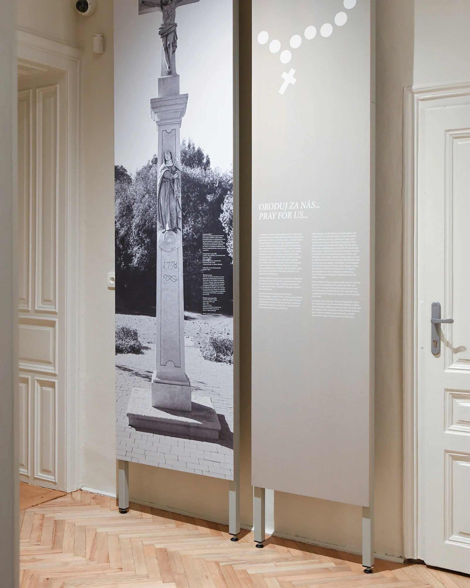 Architektúra, vizuál a realizácia dočasnej výstavy v Ponitrianskom múzeu v Nitre. Výstava využíva vertikálne panely evokujúce sakrálny priestor, doplnené o inštaláciu krížov, repasované vitríny a vizuál s motívom ruženca.
