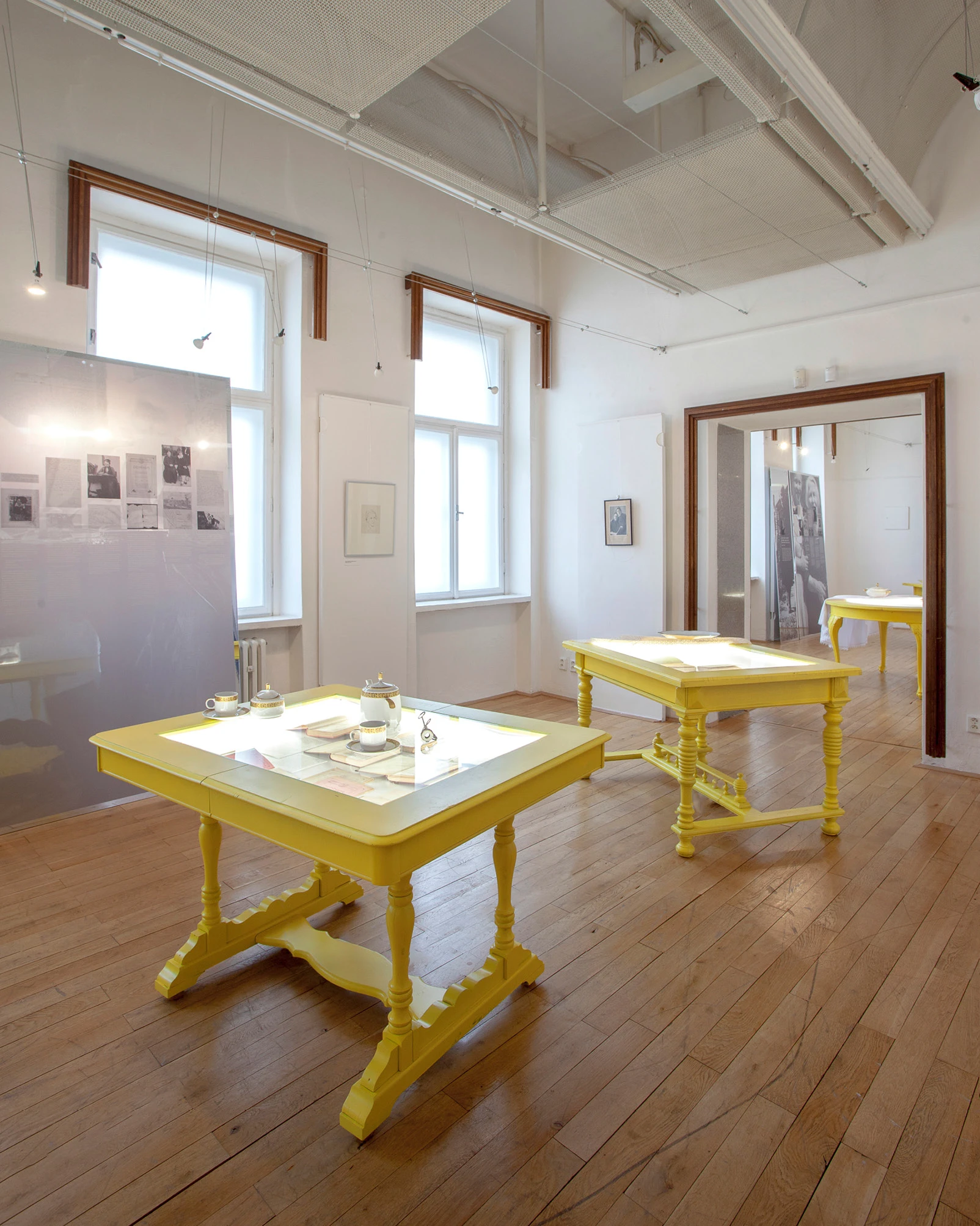 Idea výtvarno-architektonického riešenia vychádza z kontrastu medzi tradičnou ženskou rolou a angažovanými pozíciami autoriek a literátok. Tradičná rola je vo výstave znázornená kuchynským stolom ako symbolom ženskej starostlivosti o rodinu a domácnosť. Pod úrovňou dosky stola sa vo vnorených vitrínach odohráva aj nová, skrytá rola spisovateliek, autoriek, emancipovaných komentátoriek verejného života. Žltou farbou natreté stoly sú zbavené tvaroslovia a abstrahované na symbol, metaforu, ktorá funguje v kontexte inak monochromatickej výstavy. Na pozadí grafických panelov sa nachádzajú rastrované fotografie autoriek v nadživotnej veľkosti. Zrkadliace a matné plochy vytvárajú dynamickú vizuálnu hru, ktorá sa mení v závislosti od uhla pohľadu. Nejednoznačnosť, či mnohosť situácií odkazuje na ambivalentnosť jednotlivých rolí. Plagát výstavy vychádza zo siluety nohy stola, ktorá je zároveň aj ženskou siluetou. Nohu stola môžeme chápať ako metaforu nosného prvku - piliera, a zároveň nesilene odkazuje na mobiliár výstavy.