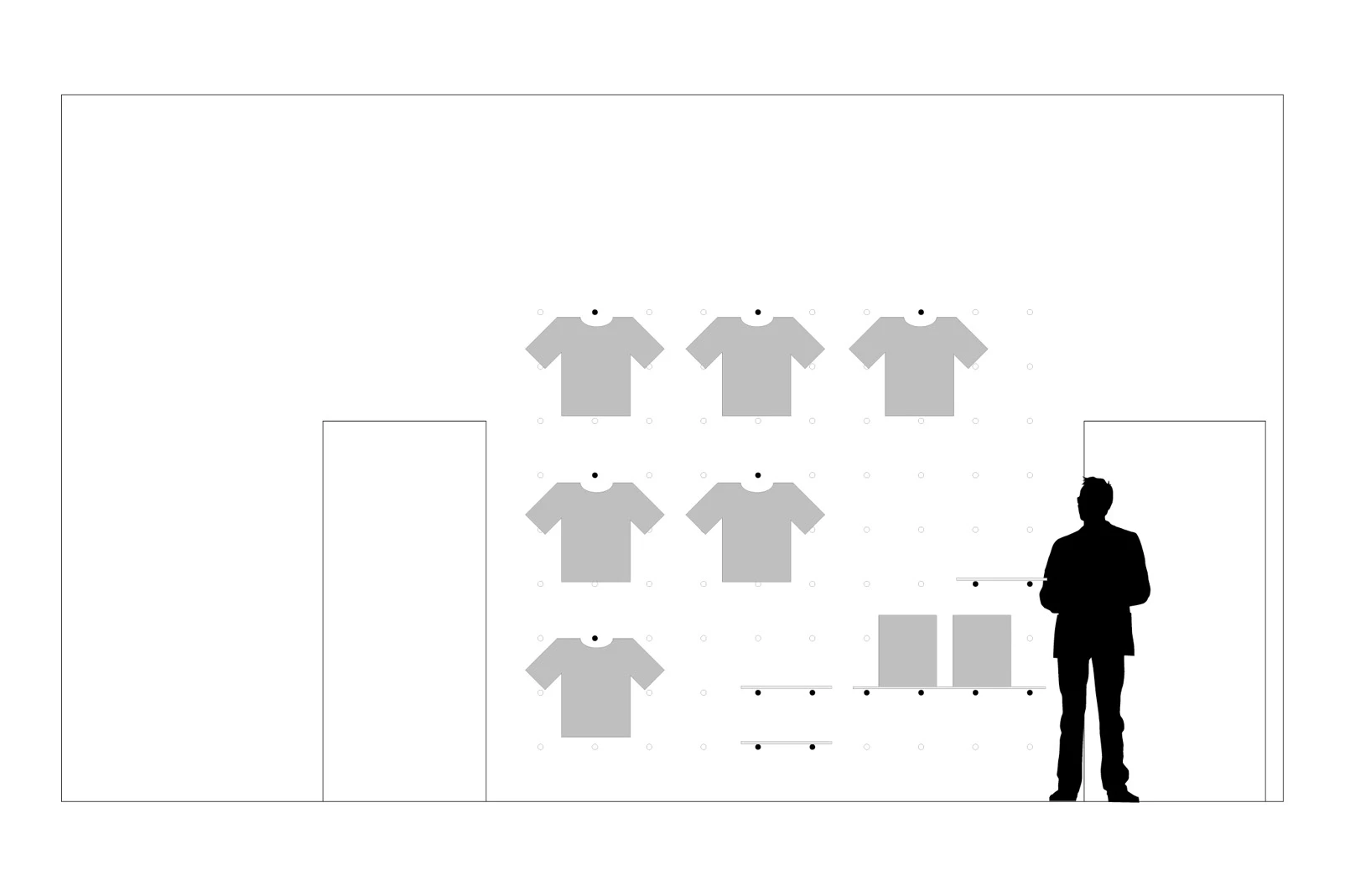 Návrh reaguje na potrebu vytvoriť priestor, ktorý bude čo najviac variabilný a univerzálny. Dizajn maximálne využíva dispozičný priestor vďaka univerzálnemu modulovému systému na stenách a stredovému pultu so zásuvkami. Steny sú celoplošne pokryté otvormi v gride, ktoré sú zapustené priamo do tehly a umožňujú voľné presúvanie inštalačných políc, úchytov a vešiakov po celej ich ploche. Police možno použiť horizontálne alebo pod uhlom na vystavovanie tlačovín a iných predmetov. Vizuál obchodu je moderný, jednoduchý a funkčný. Použité materiály sú brezová preglejka a pozinkovaný plech.