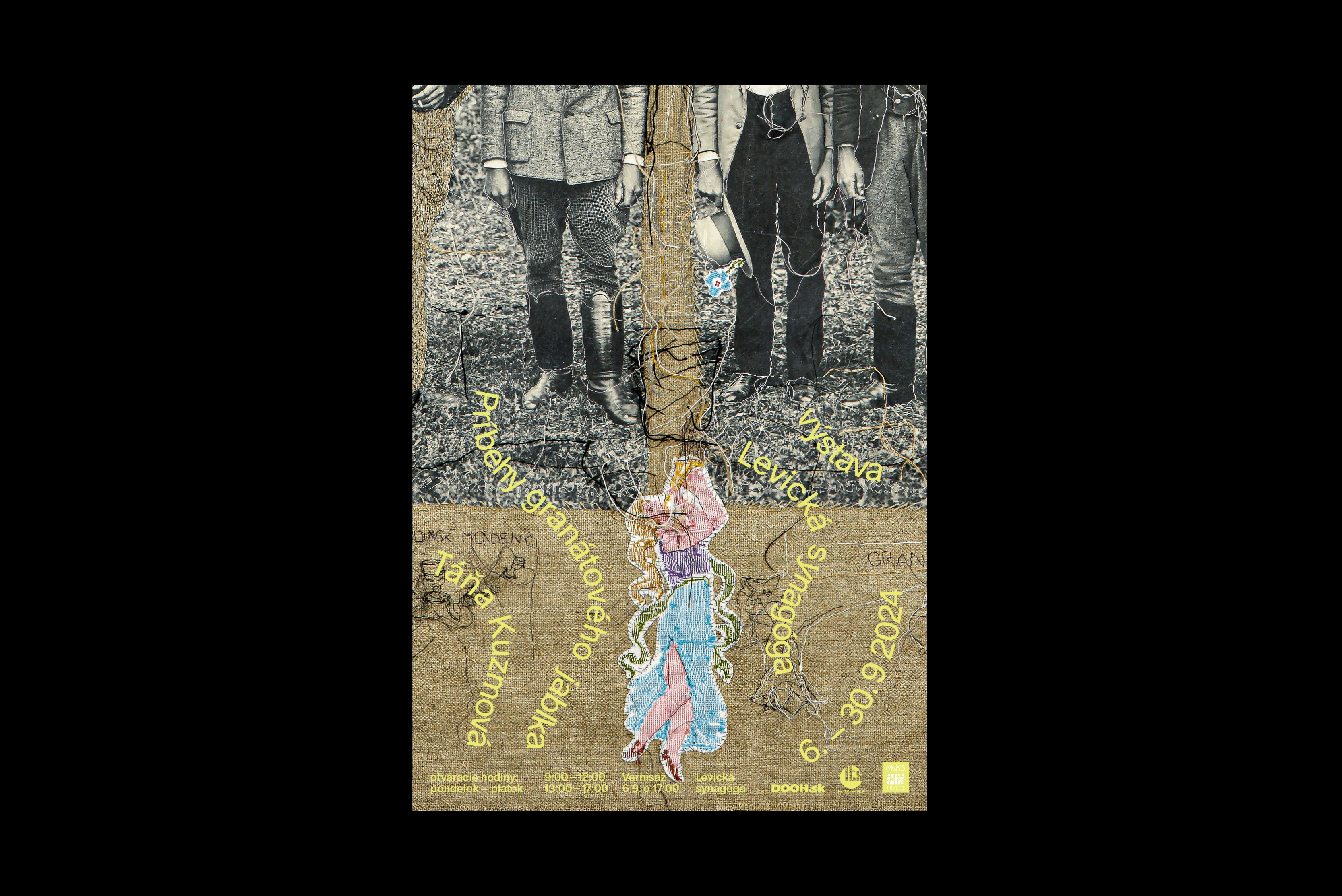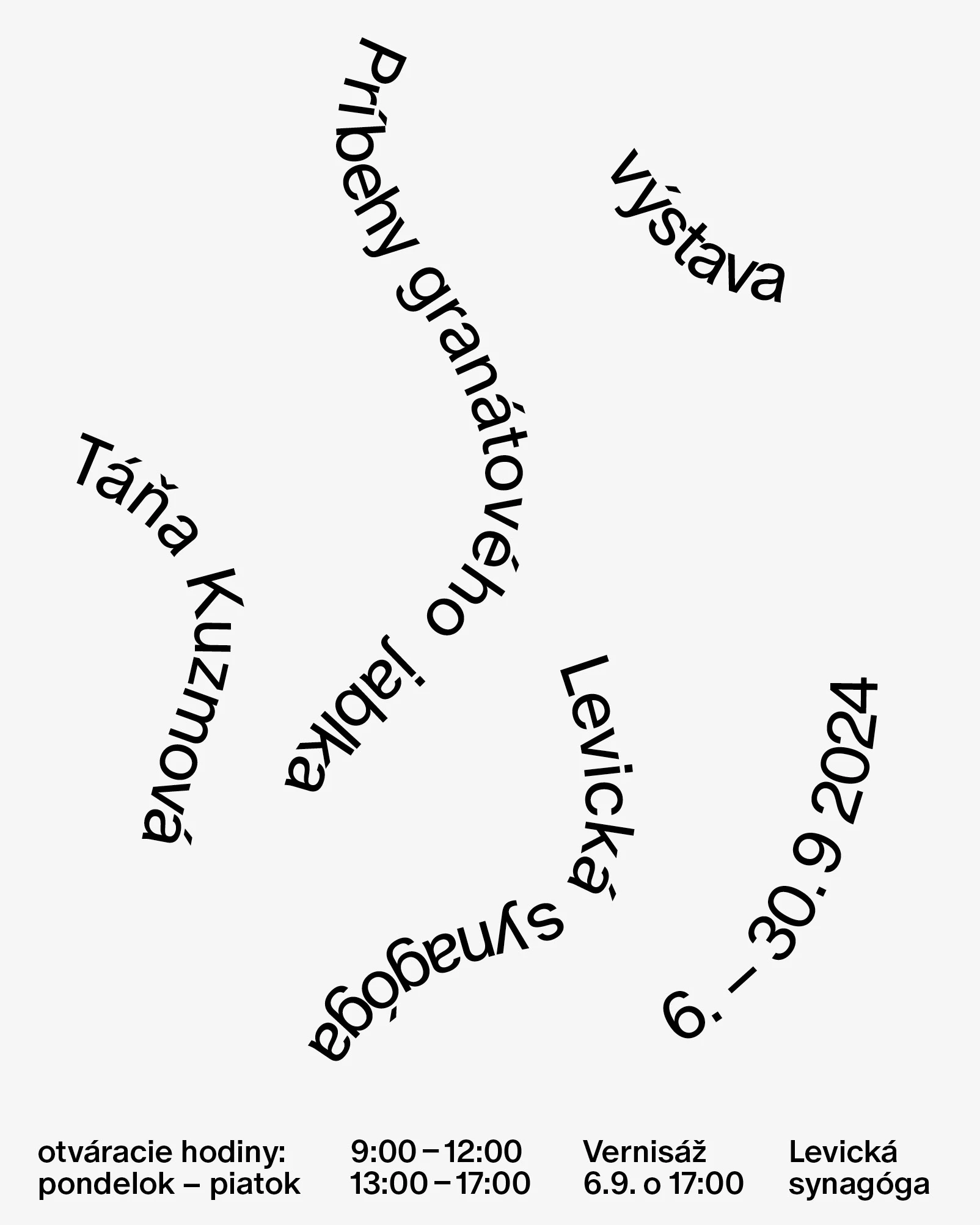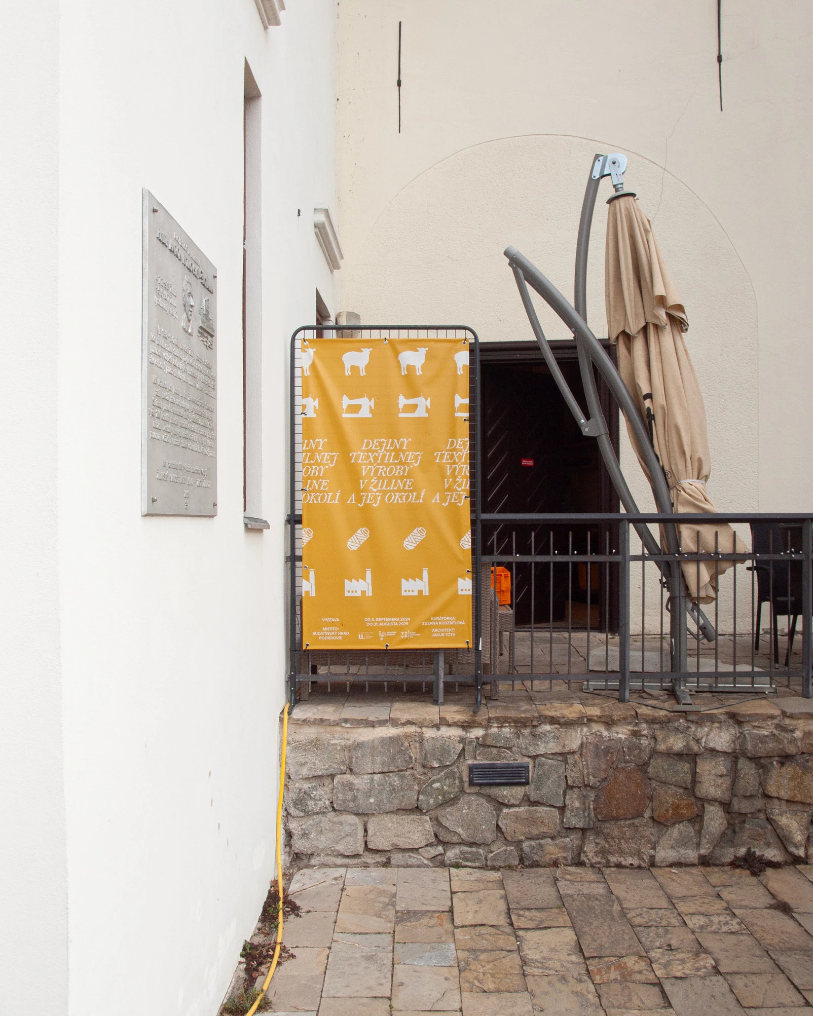 Vizuál výstavy pracuje s typografiou, ktorá imituje pohyb nite – voľne sa vinie priestorom a reaguje na tkanú a prešívanú podstatu vystavených diel. Organická kompozícia písma zároveň nadväzuje na jemnosť textilu a silný osobný príbeh ukrytý vo fotografiách.