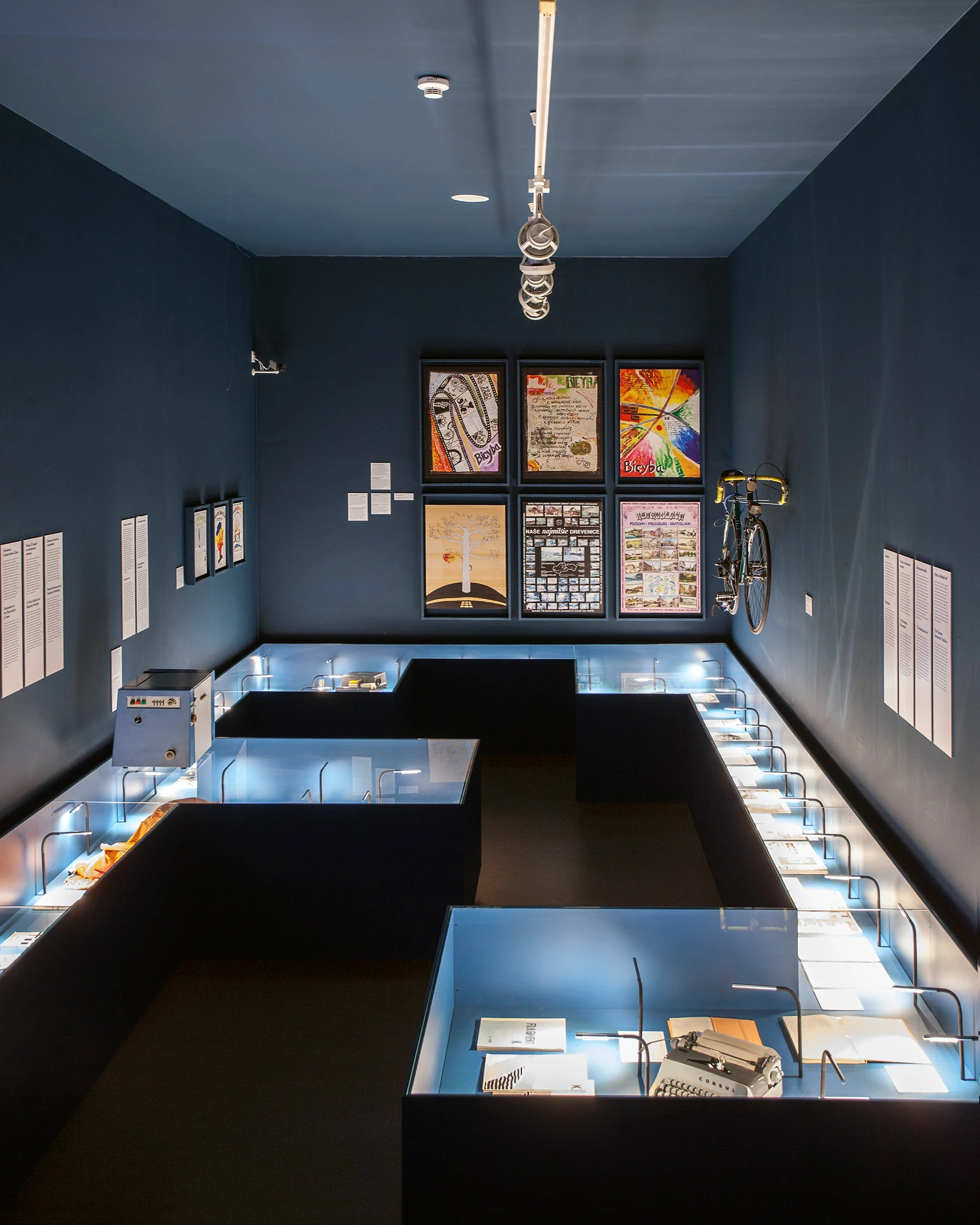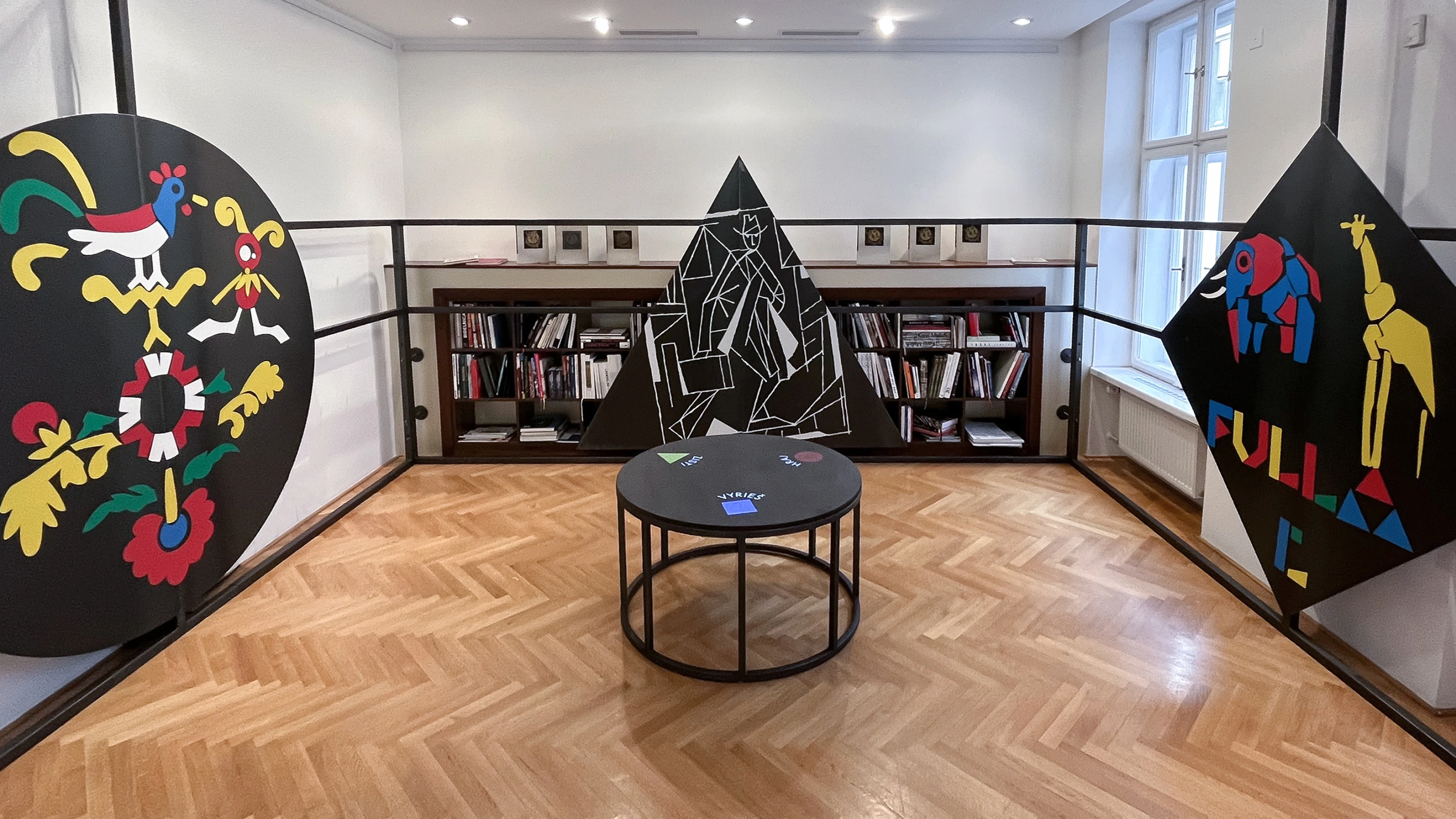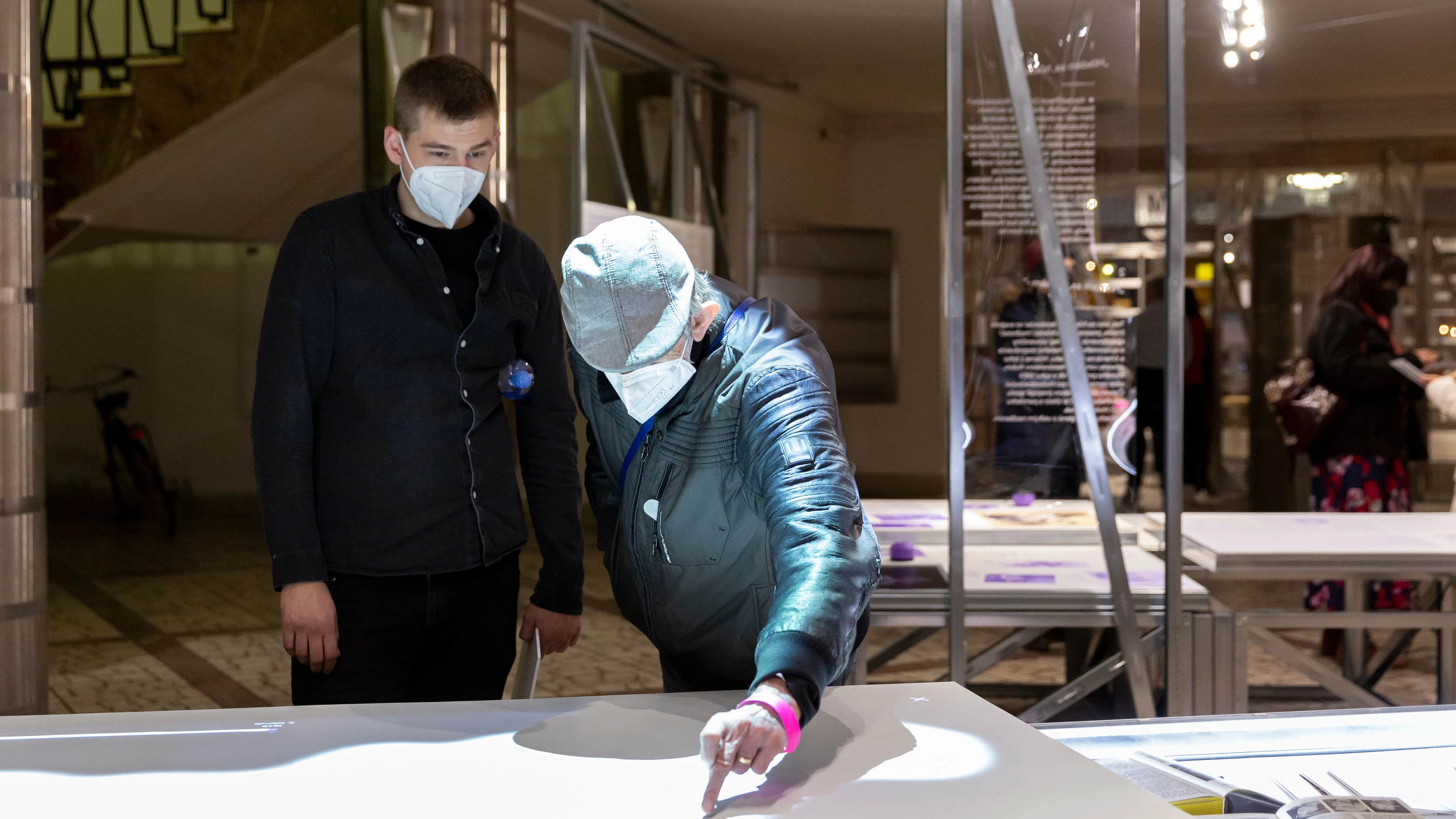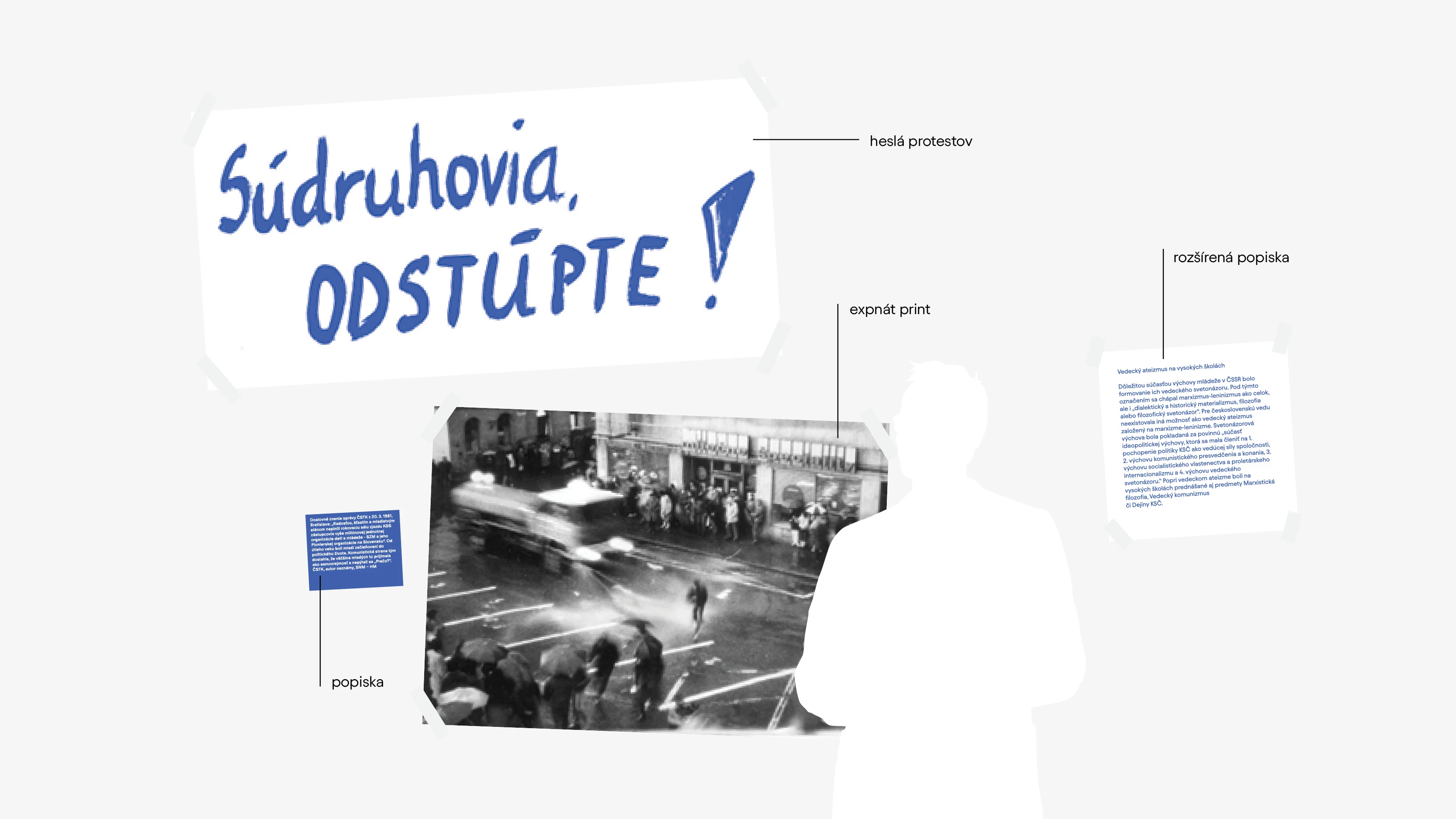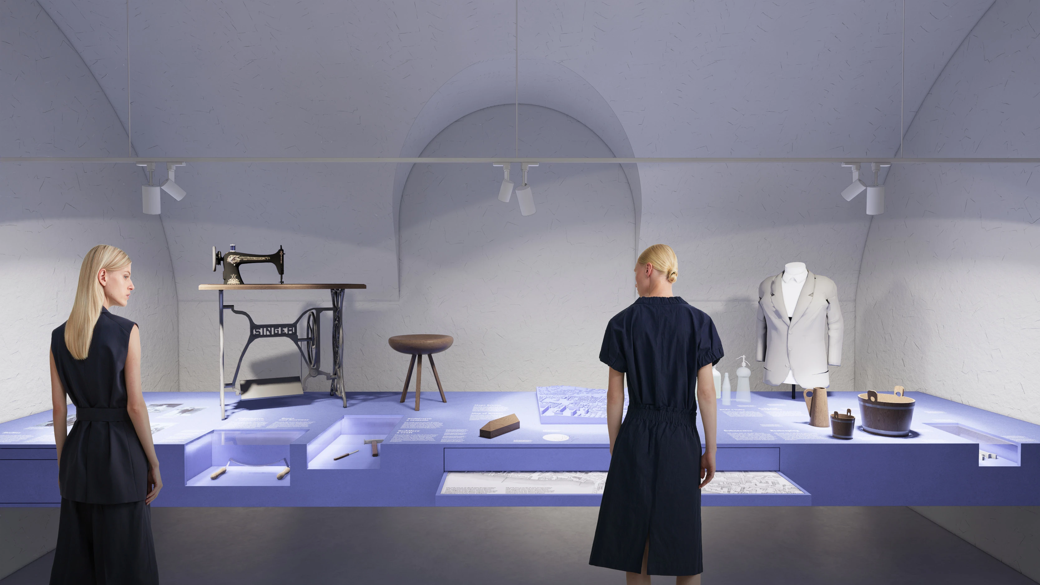 Ústredným objektom je pracovný stôl inšpirovaný ponkom, ktorý prechádza tromi miestnosťami. Vďaka výraznej farbe modrotlače sa stáva nielen výtvarným, ale aj priestorovým ťahákom expozície. Počas prehliadky stôl umožňuje prepnúť sa „zoom in“ od všeobecného k detailnému – zásuvky, vitríny, zvukové stopy, videá, mapping, interaktívne nasvietenie. Funkcia stola pokračuje aj v ďalších priestoroch cez predstenu a úložný systém. Doplnkové zóny ponúknu oddych s tabletmi pre ďalšie informácie ku každému exponátu.