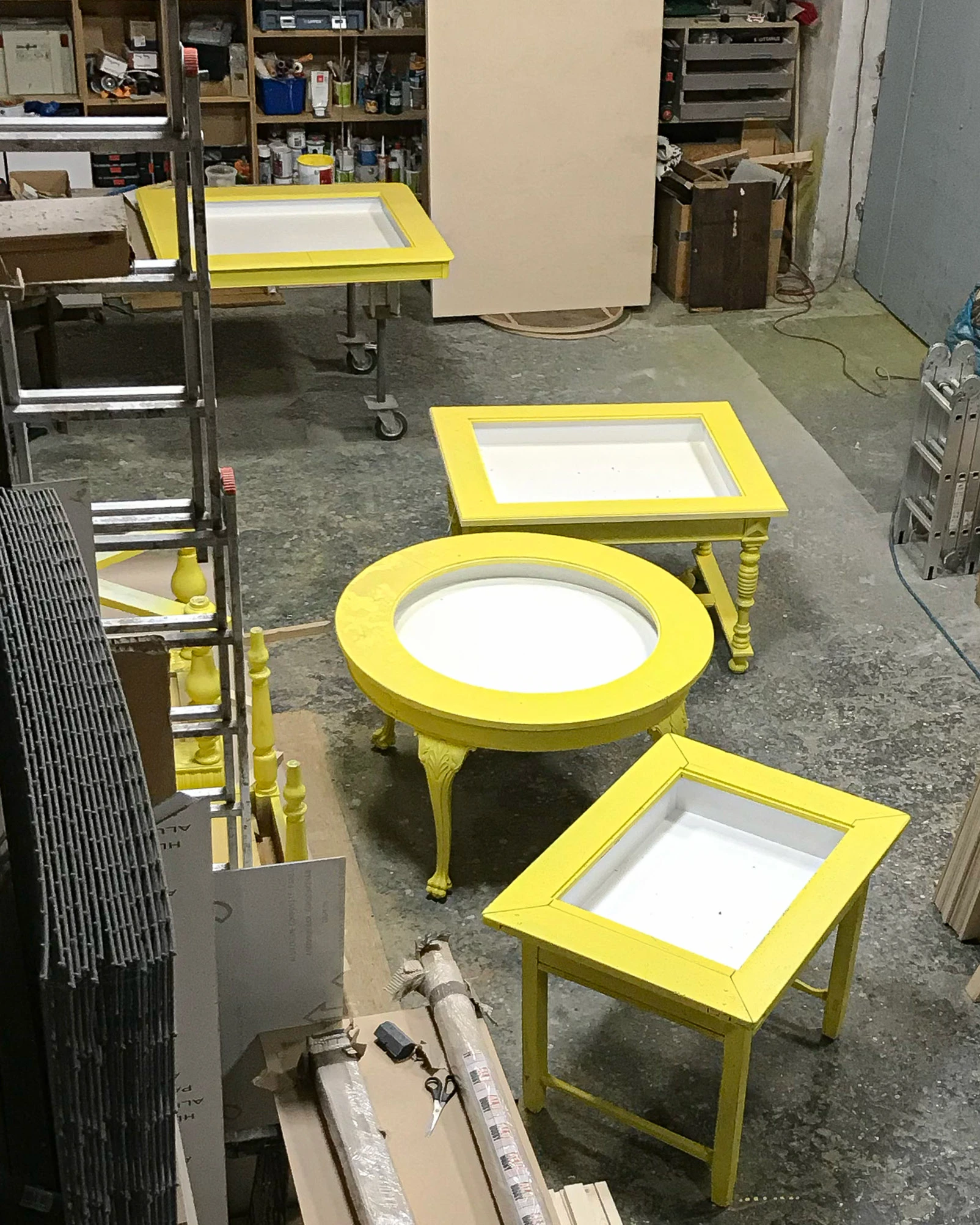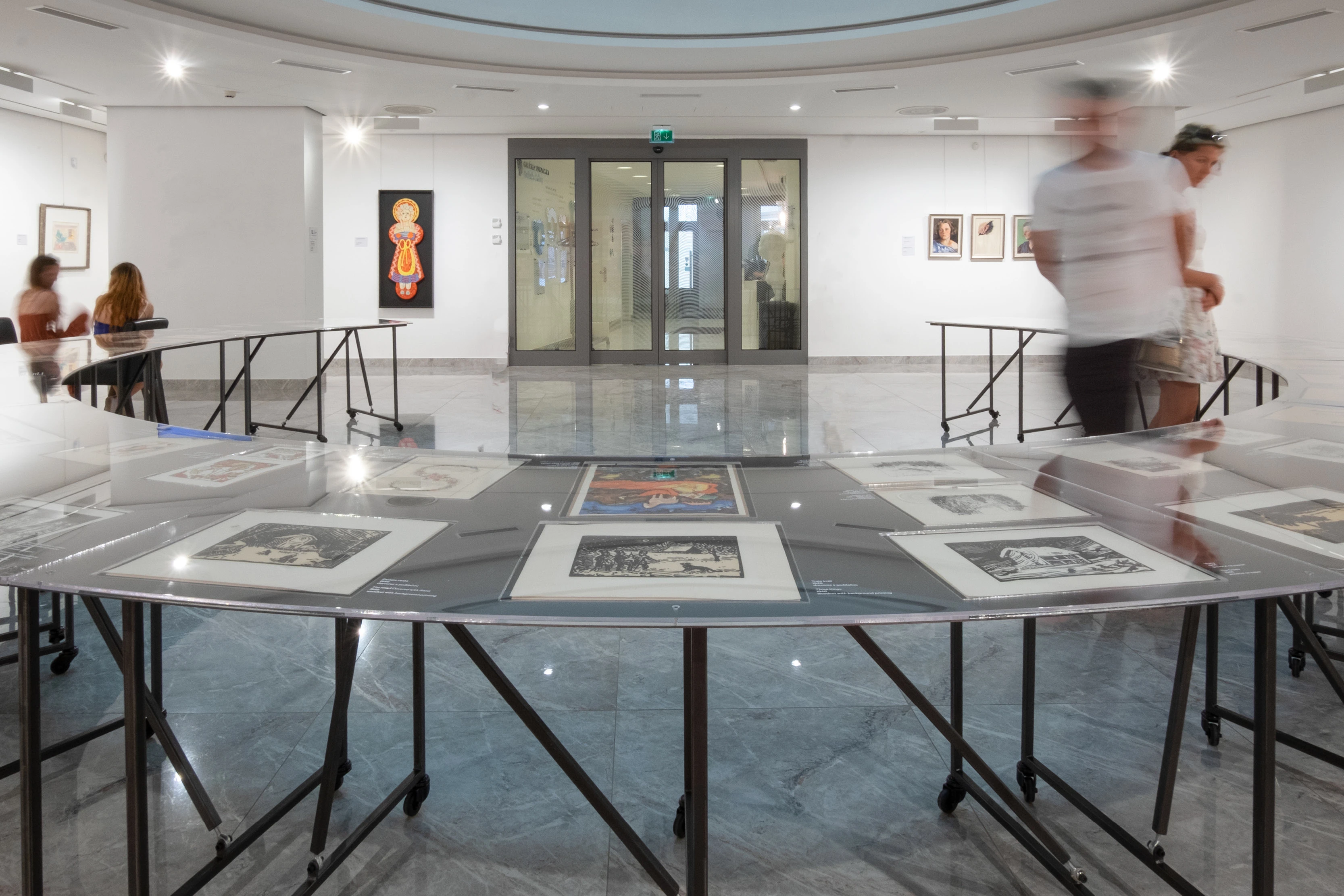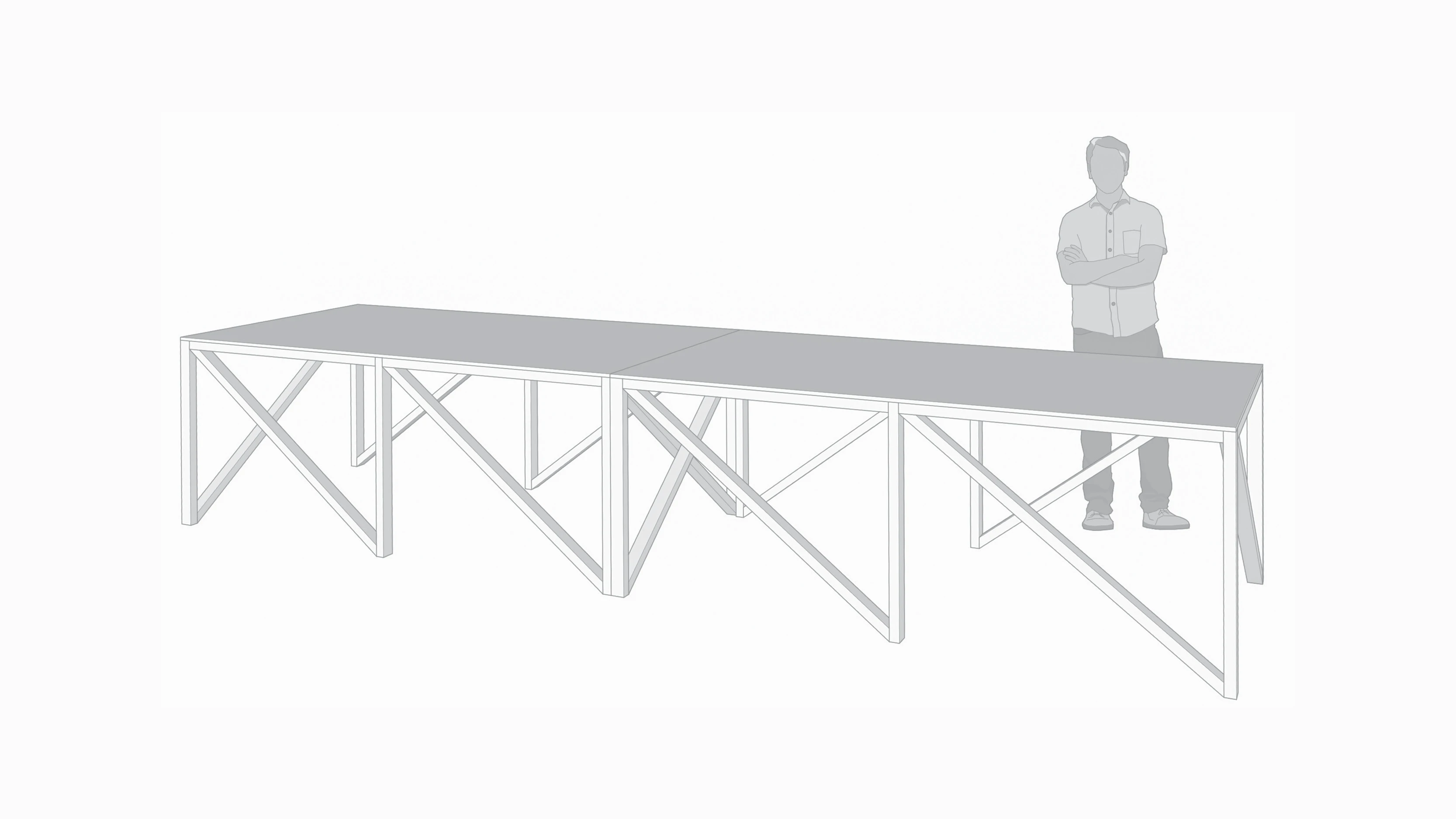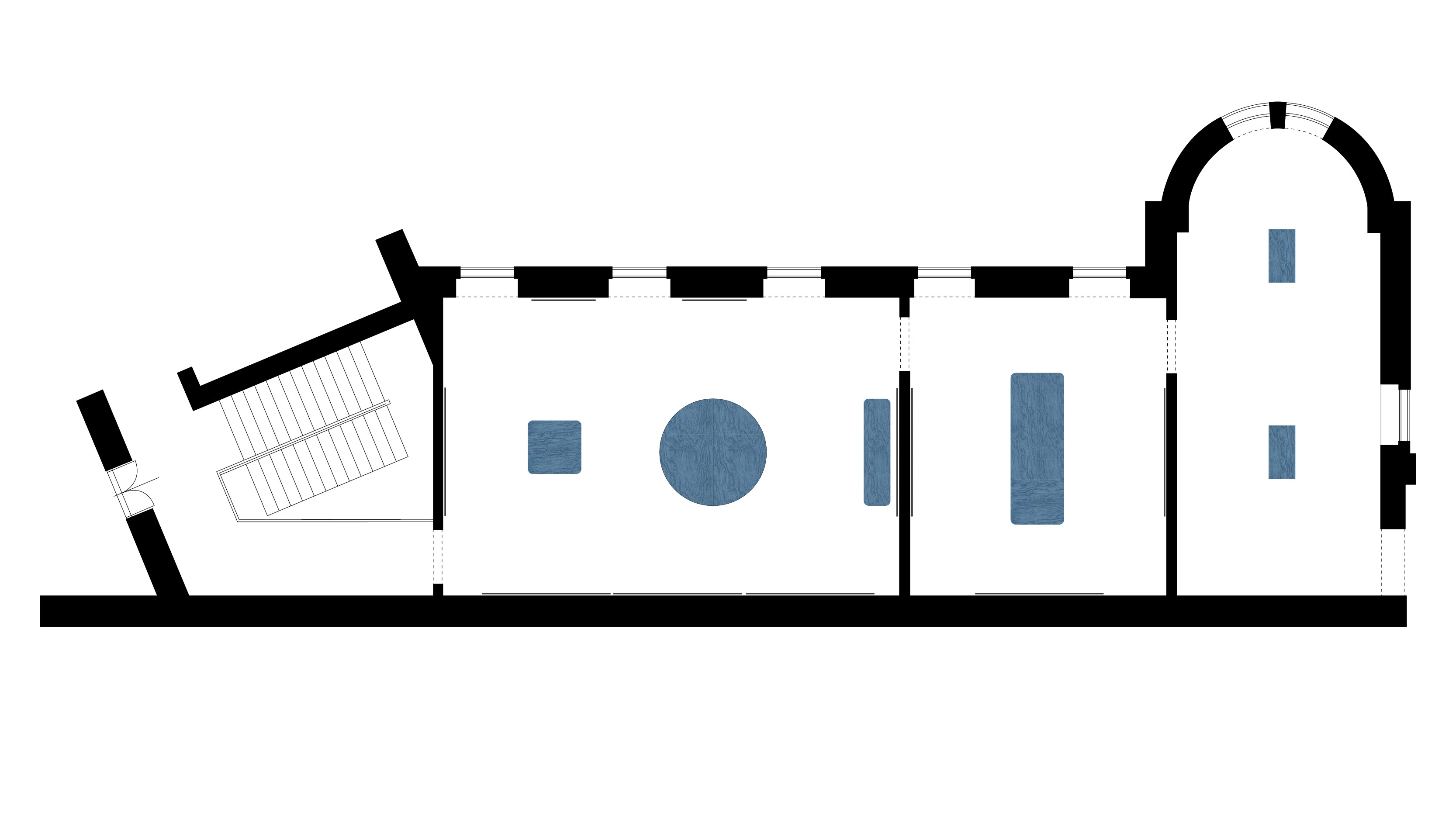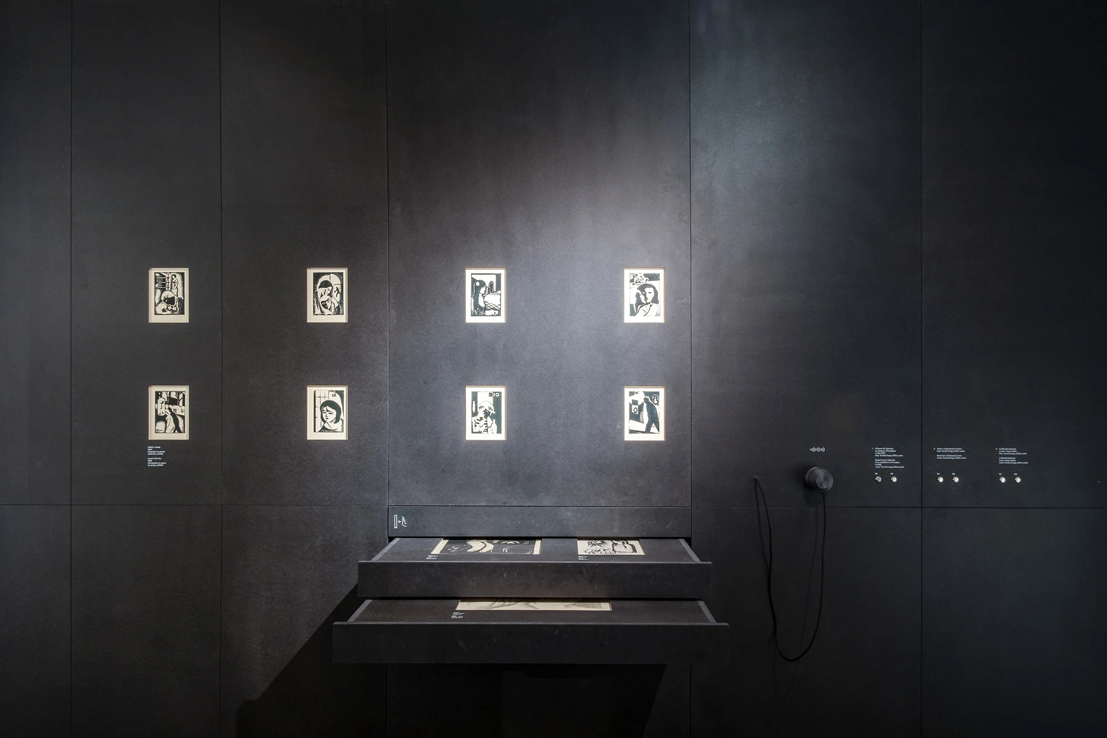 Ústredným objektom je pracovný stôl inšpirovaný ponkom, ktorý prechádza tromi miestnosťami. Vďaka výraznej farbe modrotlače sa stáva nielen výtvarným, ale aj priestorovým ťahákom expozície. Počas prehliadky stôl umožňuje prepnúť sa „zoom in“ od všeobecného k detailnému – zásuvky, vitríny, zvukové stopy, videá, mapping, interaktívne nasvietenie. Funkcia stola pokračuje aj v ďalších priestoroch cez predstenu a úložný systém. Doplnkové zóny ponúknu oddych s tabletmi pre ďalšie informácie ku každému exponátu.