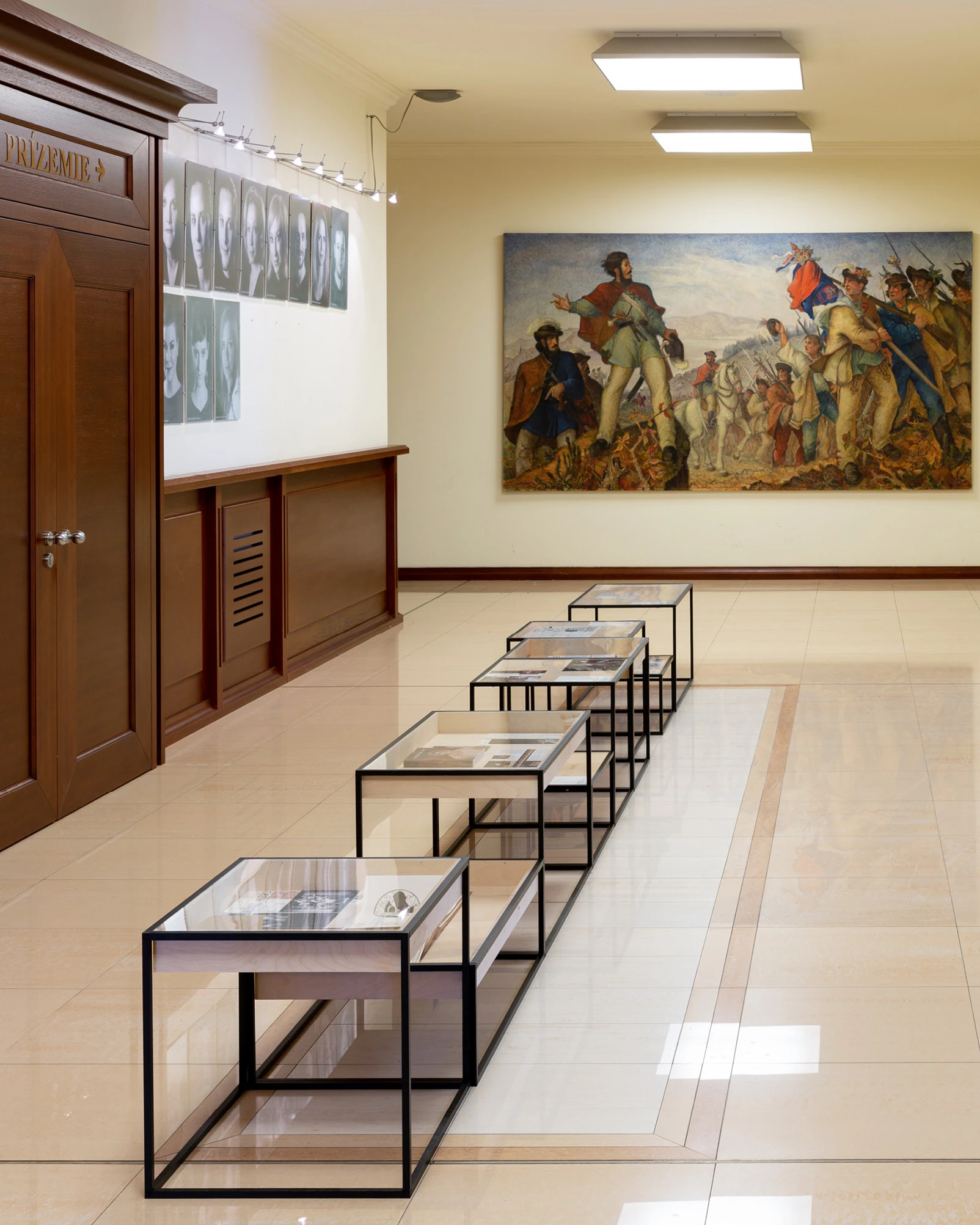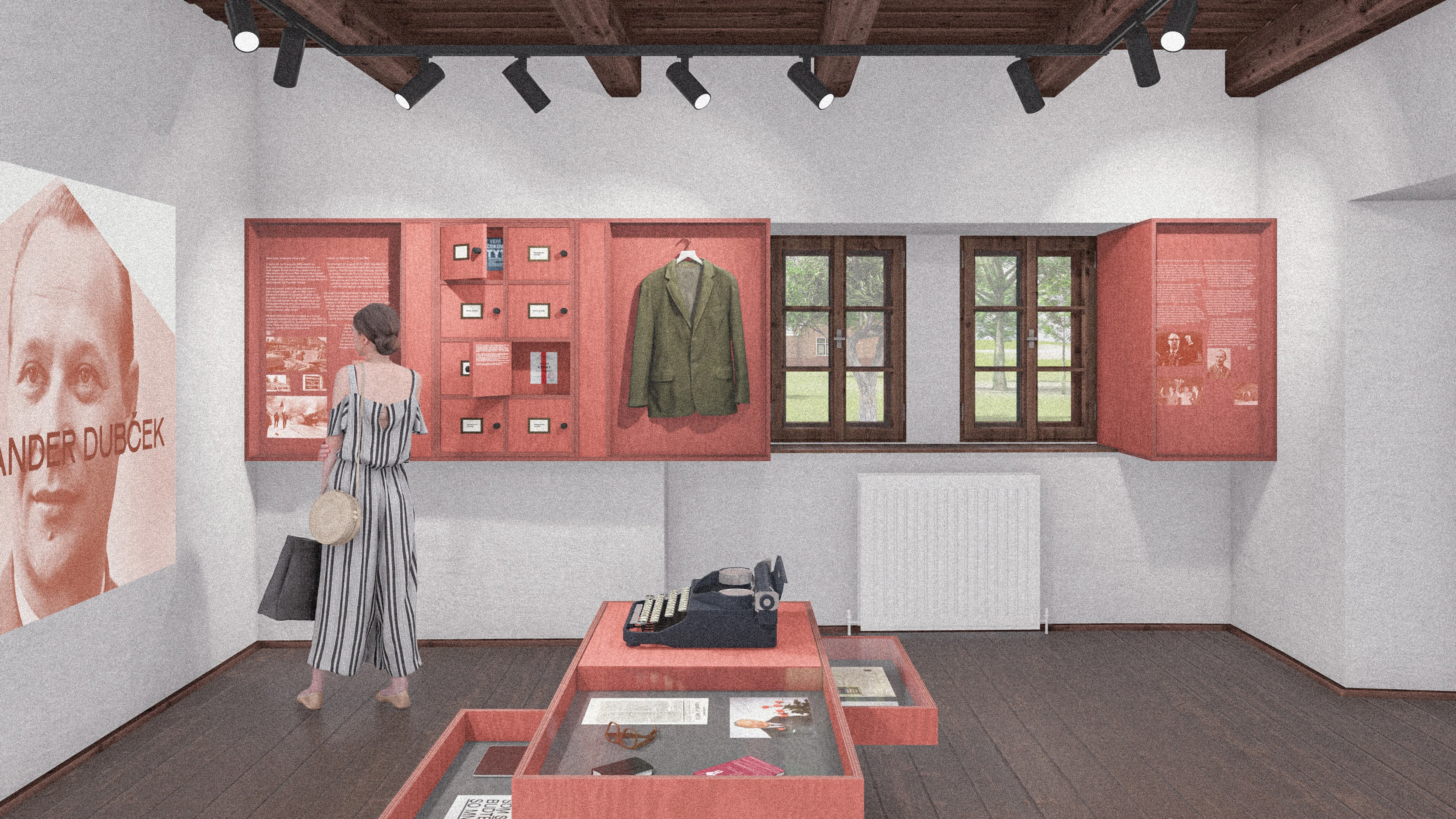 Výstavný dizajn rešpektuje historický interiér a prepája ho so súčasným výrazom. Základ tvorí modulárna konštrukcia z borovicovej preglejky ktorá pôsobí prirodzene a remeselne. Výstava pracuje s nástennými panelmi vitrínami a centrálnymi stolmi so zásuvkami. Farebnosť odlíšená zelenou pre Štúra a červenou pre Dubčeka je doplnená neutrálnou sivou. V každej miestnosti sa nachádza projektor so záznamom premietaným na bielu stenu. Návrh počíta s flexibilným využitím priestorov pre školské skupiny a workshopy. Osvetlenie je riešené pomocou podvesených líšt a zachovaných svietidiel.
