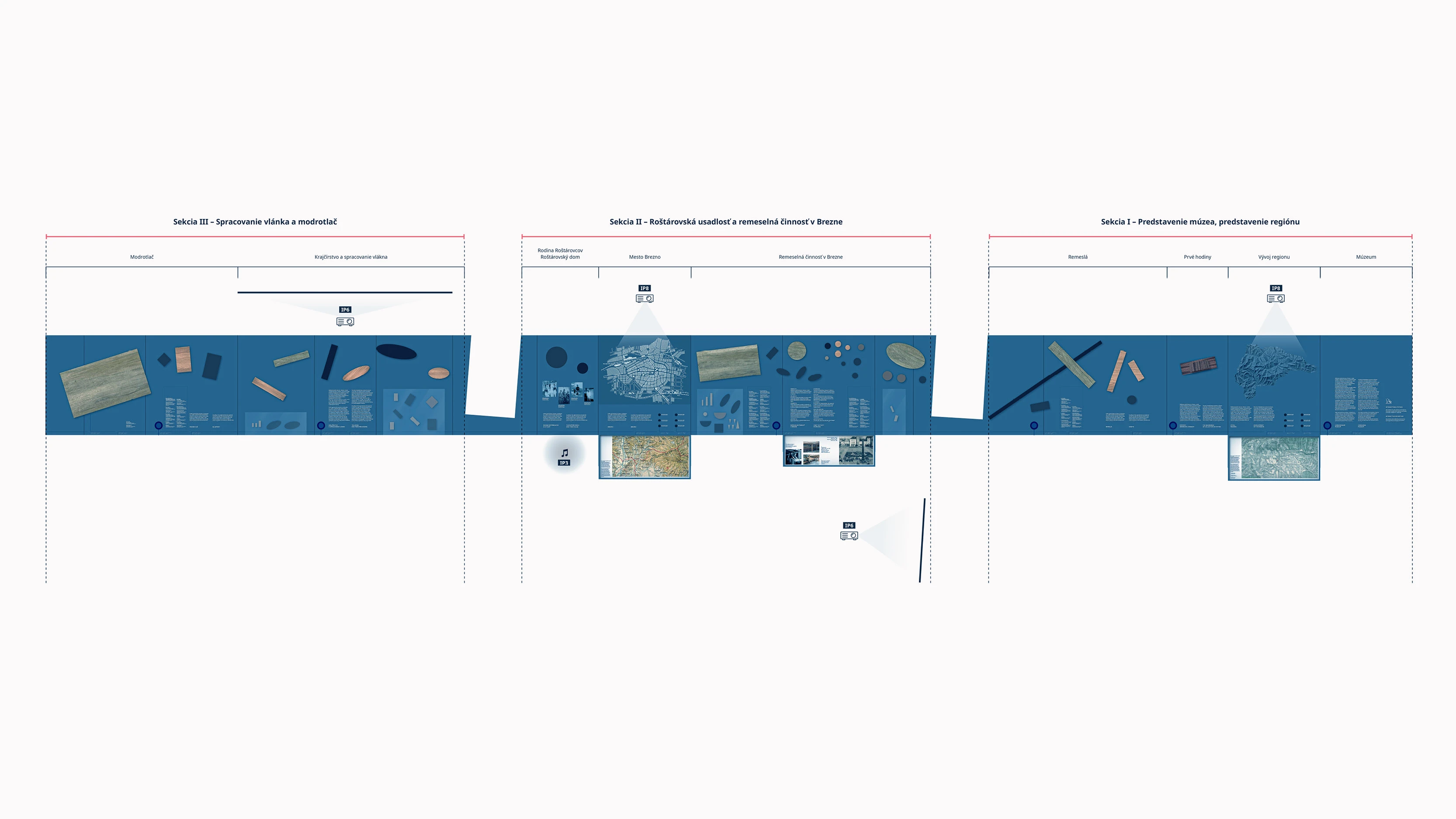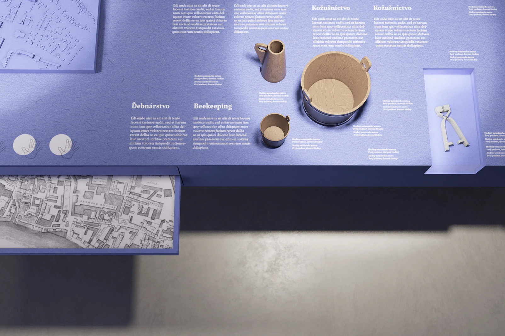 Výťazný návrh a projektová dokumentácia novej expozície Horehronského múzea v Brezne. Interaktívna expozícia s modrotlačovým stolom prepája remeslo, objavovanie a zážitok.