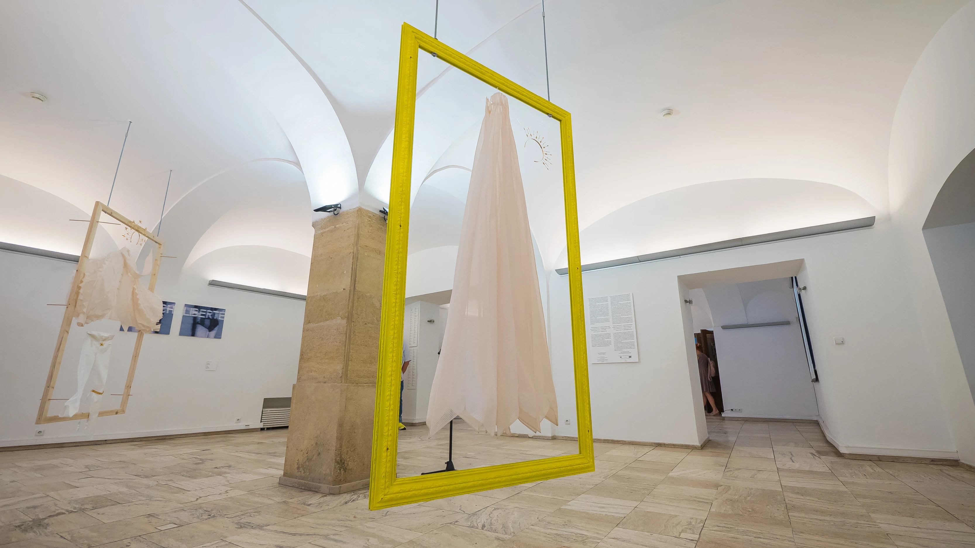 Výstava predstavuje textilnú tvorbu výtvarníčky. Môžete vidieť tkané obrazy, ale najmä veľkorozmerné historické rodinné fotografie na fotoplátne, ktoré sú veľkodušne rámované vrecovinou, prešívané a vypĺňané tak, že vytvárajú reliéf.