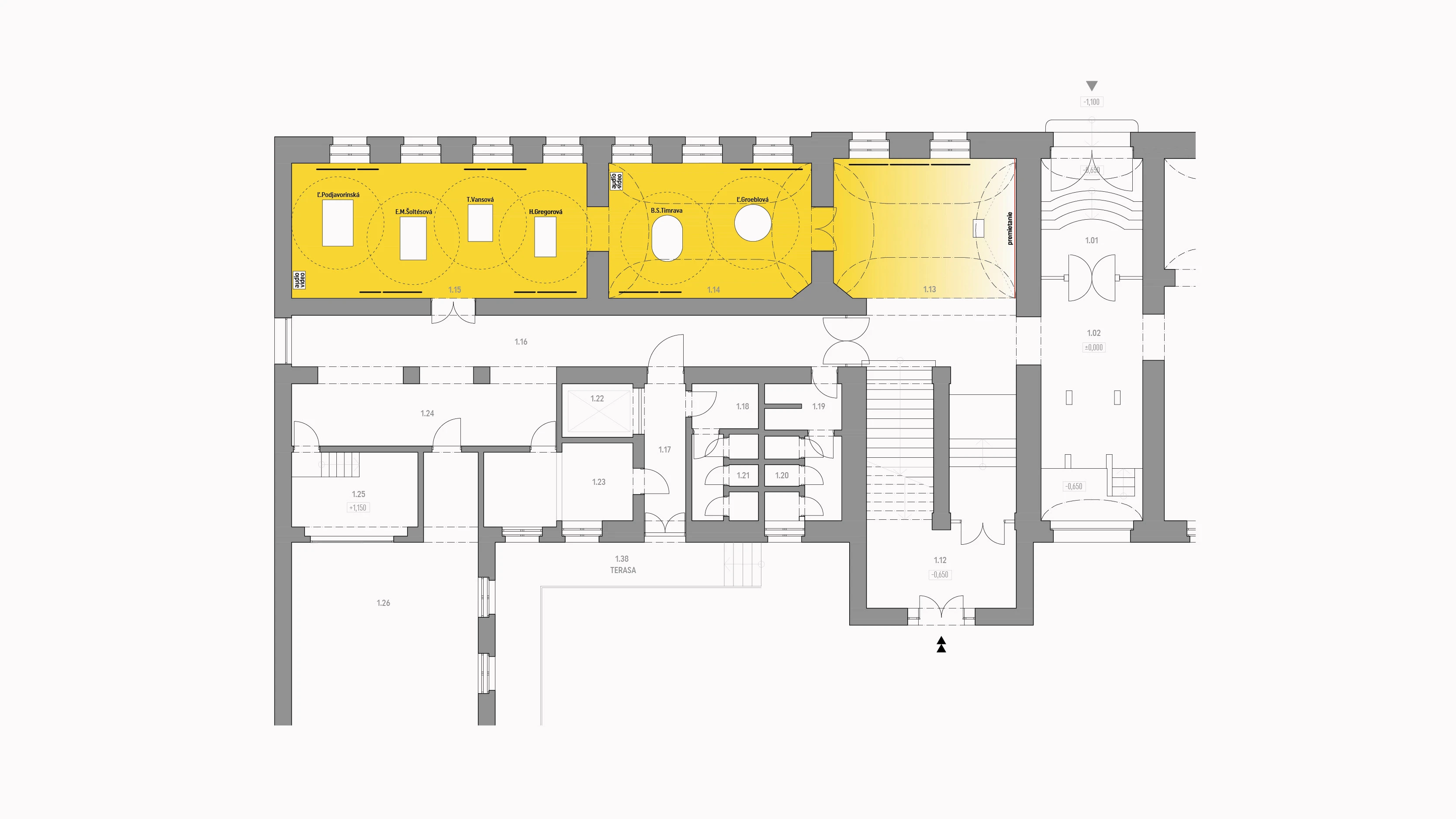 Súťažný architektonický návrh expozície o básnikovi Ivanovi Kraskovi. Náš koncept prepája knižnicu s časovou osou jeho života v minimalistickom priestore s interaktívnymi panelmi.