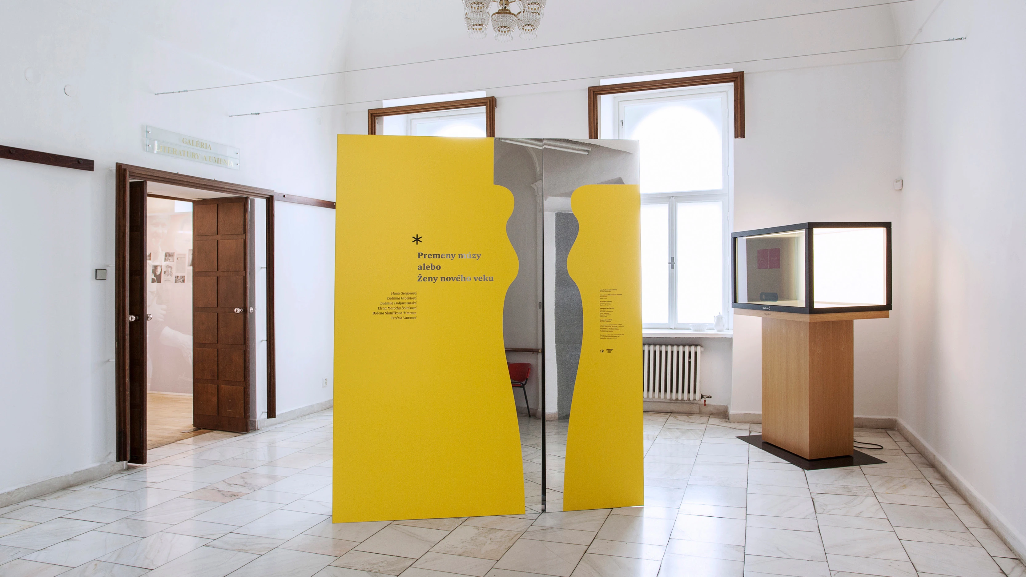 Idea výtvarno-architektonického riešenia vychádza z kontrastu medzi tradičnou ženskou rolou a angažovanými pozíciami autoriek a literátok. Tradičná rola je vo výstave znázornená kuchynským stolom ako symbolom ženskej starostlivosti o rodinu a domácnosť. Pod úrovňou dosky stola sa vo vnorených vitrínach odohráva aj nová, skrytá rola spisovateliek, autoriek, emancipovaných komentátoriek verejného života. Žltou farbou natreté stoly sú zbavené tvaroslovia a abstrahované na symbol, metaforu, ktorá funguje v kontexte inak monochromatickej výstavy. Na pozadí grafických panelov sa nachádzajú rastrované fotografie autoriek v nadživotnej veľkosti. Zrkadliace a matné plochy vytvárajú dynamickú vizuálnu hru, ktorá sa mení v závislosti od uhla pohľadu. Nejednoznačnosť, či mnohosť situácií odkazuje na ambivalentnosť jednotlivých rolí. Plagát výstavy vychádza zo siluety nohy stola, ktorá je zároveň aj ženskou siluetou. Nohu stola môžeme chápať ako metaforu nosného prvku - piliera, a zároveň nesilene odkazuje na mobiliár výstavy.