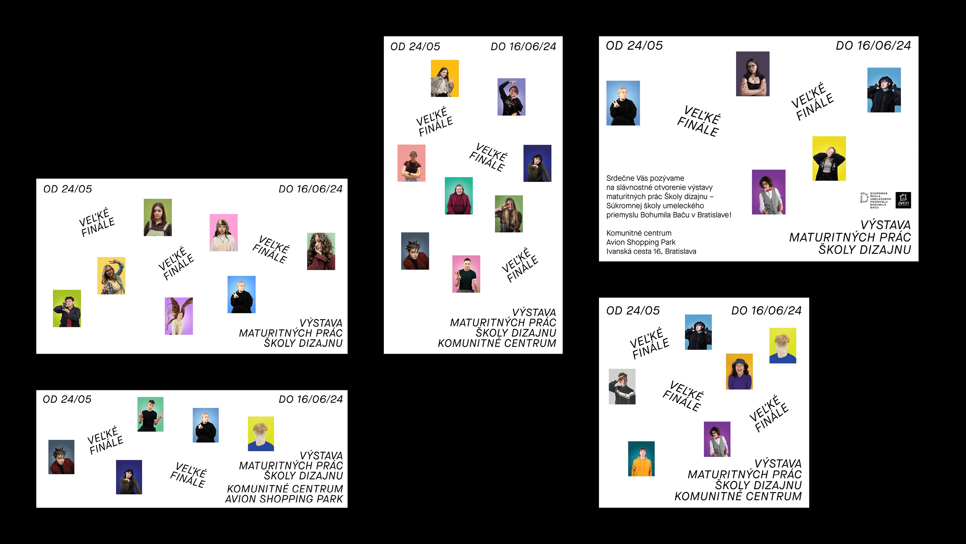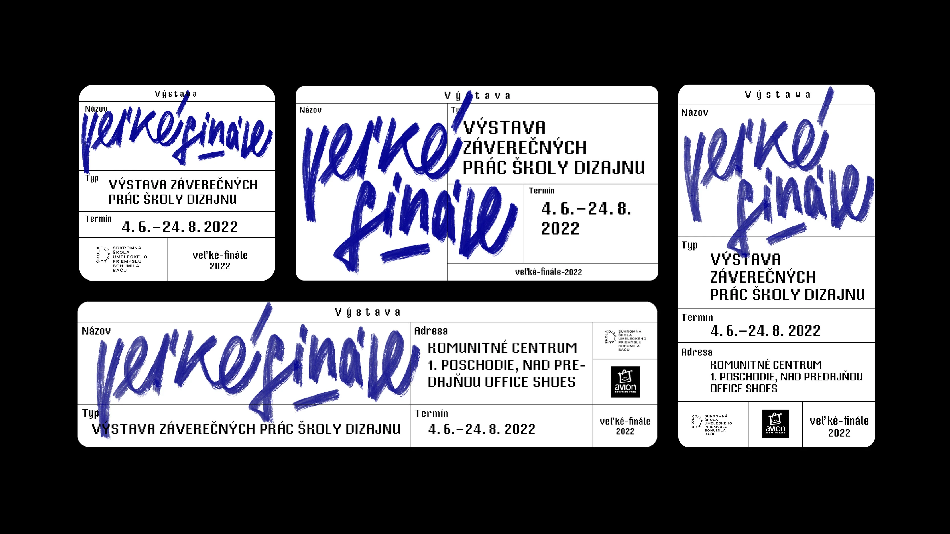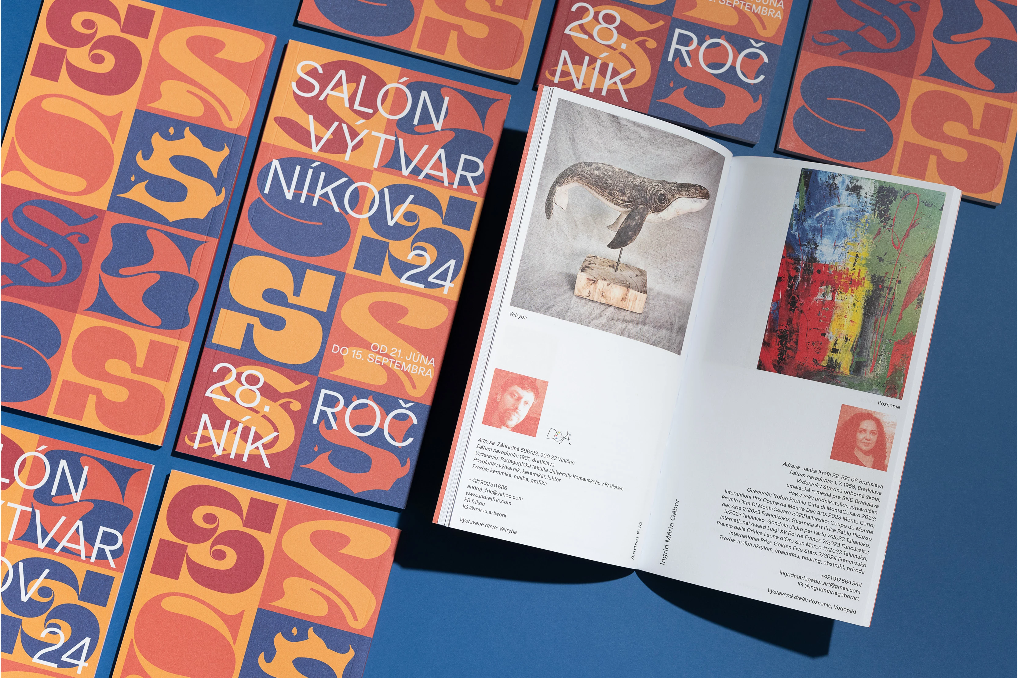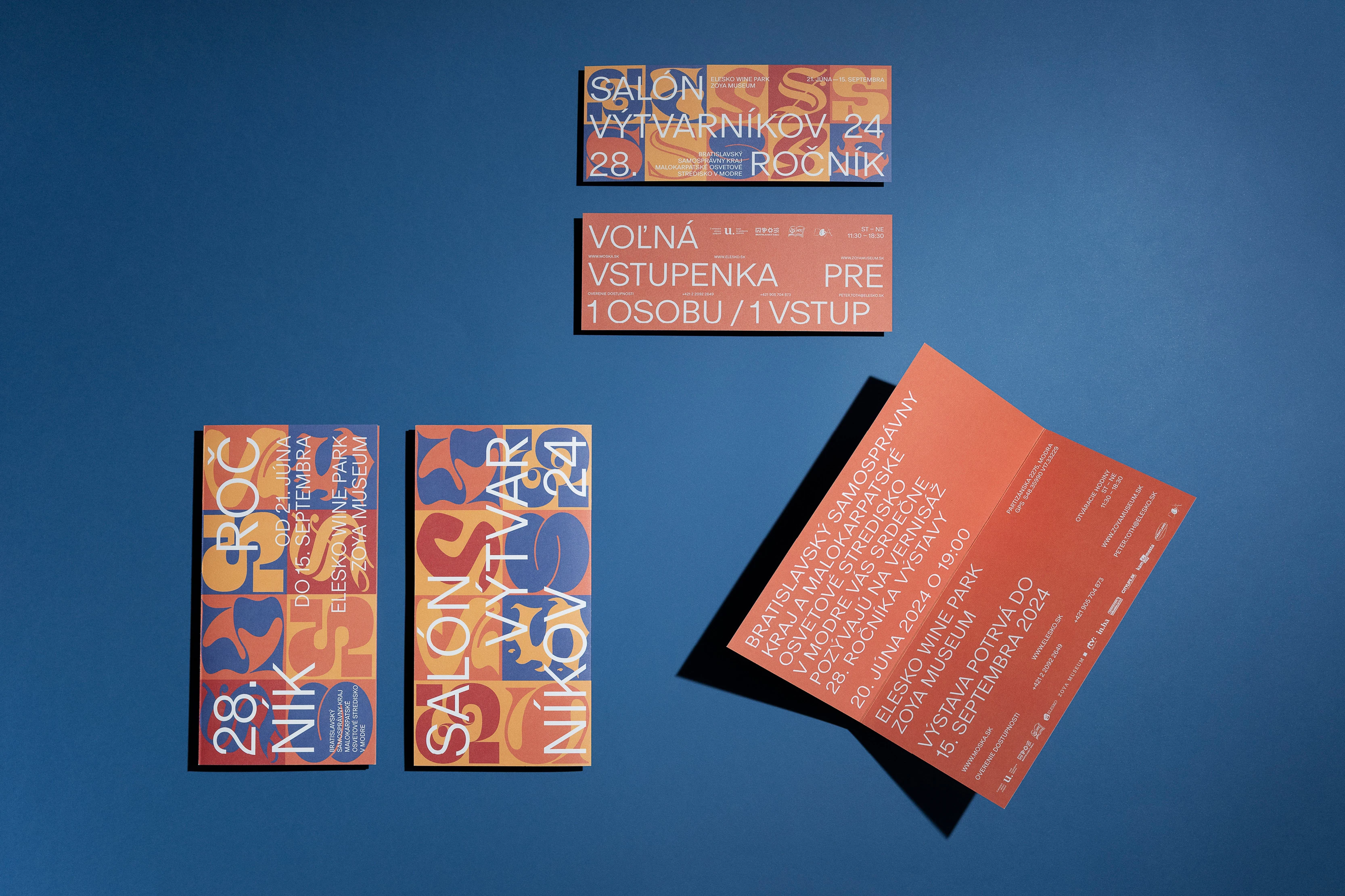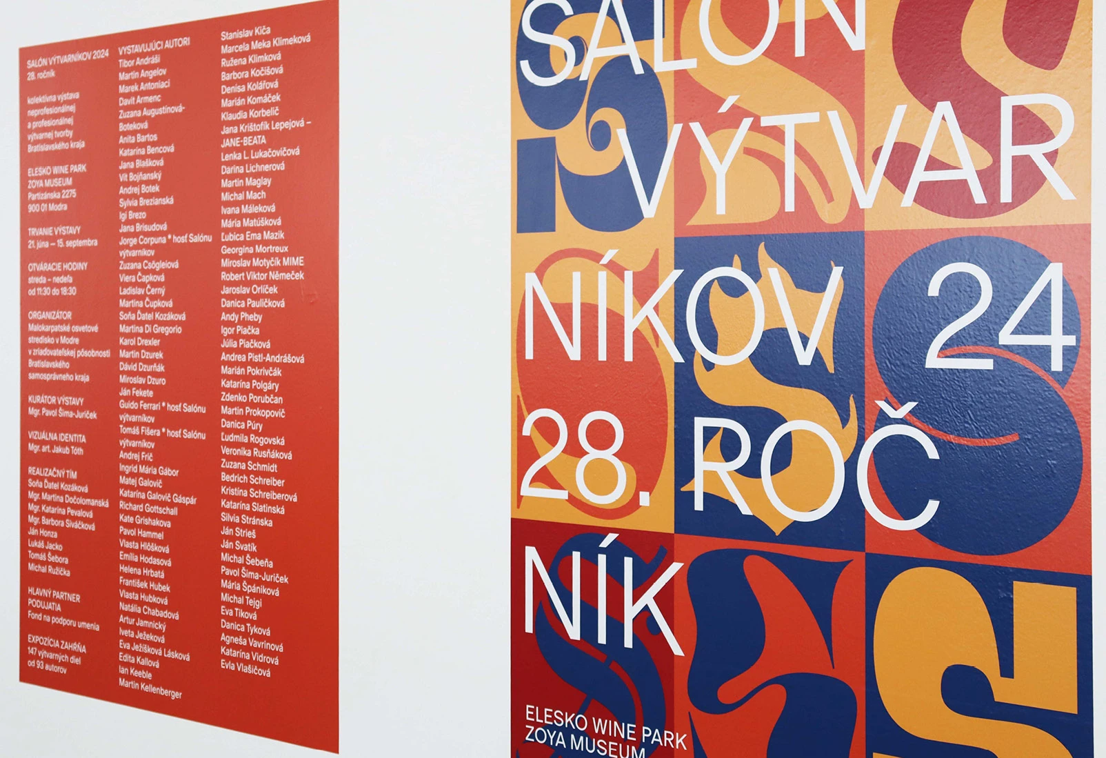 Vizuál Salónu výtvarníkov funguje ako modulárny dizajnový systém pre rôzne formáty – plagáty, bannery aj sociálne médiá – ktoré sa prispôsobujú šírke, výške i štvorcovému priestoru. Hlavná grafická metafora kombinuje farebné bloky a ornamentálne vzory, ktoré reprezentujú rozmanitosť použitých médií – maľbu, sochu, fotografiu, textil. Vedľa nich je použitá čistá minimalistická typografia, ktorá nesie informačnú rovinu prehľadne a profesionálne – kontrastným spojením umeleckého chaosu a racionálnej komunikácie podporuje jednotnú a modernú identitu multižánrového podujatia.