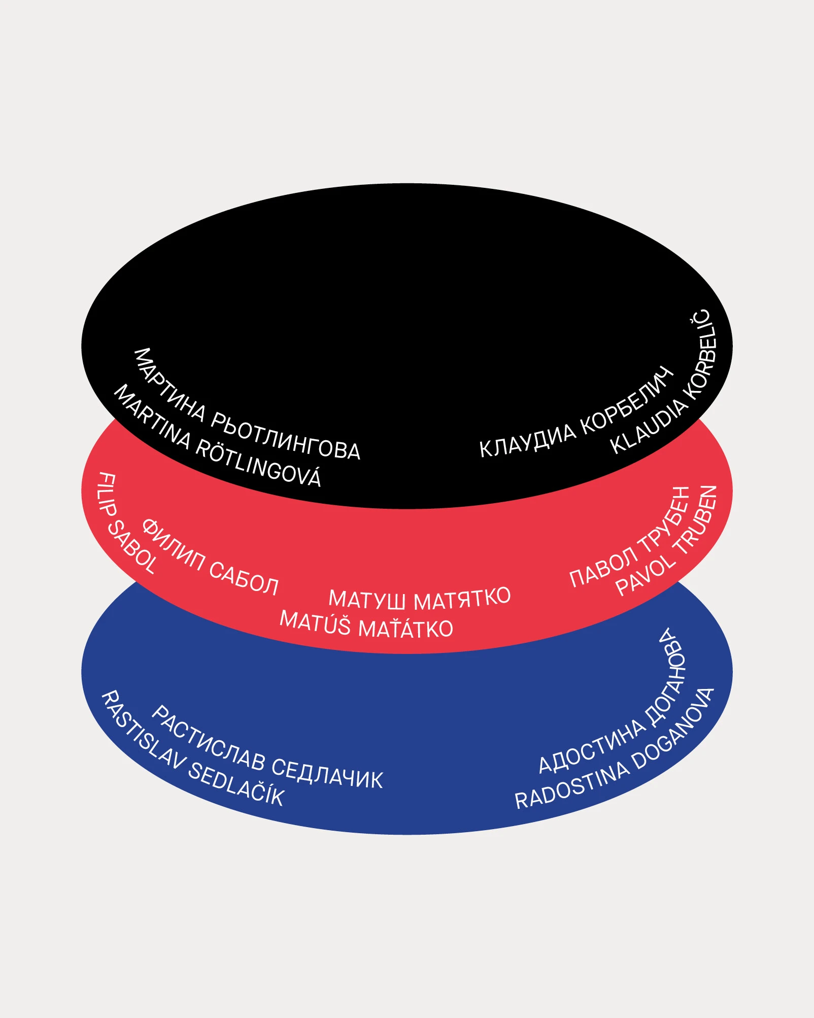 Vizuál výstavy v Sofii propaguje sedem súčasných slovenských umelcov. Grafika využíva prekrývajúce sa elipsy a trikolóru, čím spája Slovensko a Bulharsko a zdôrazňuje medzinárodný charakter.