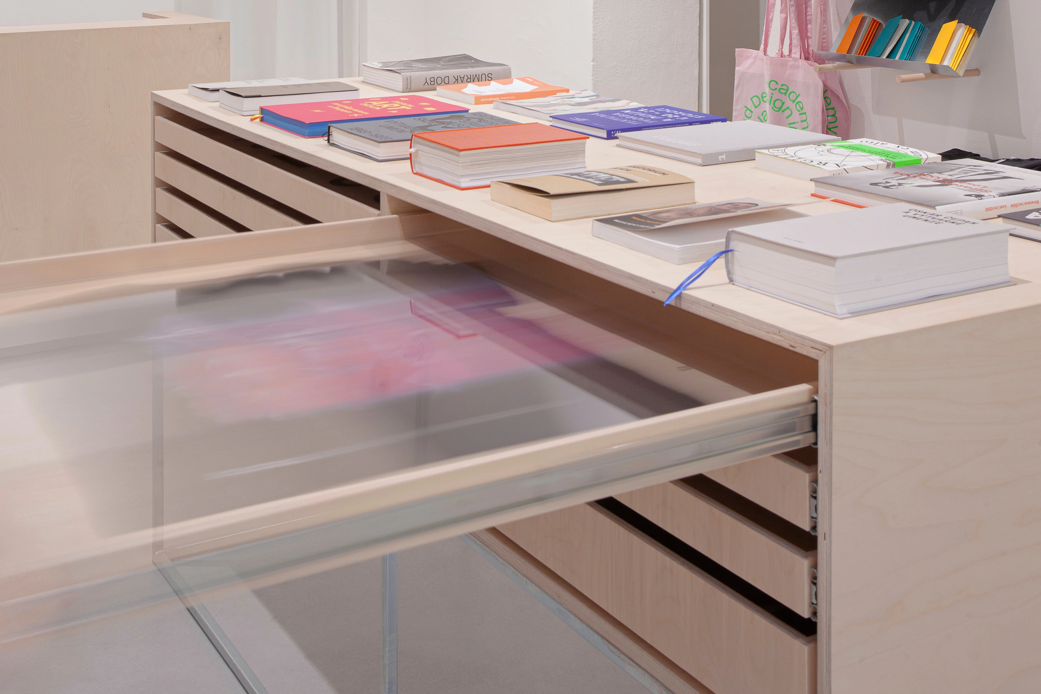 Návrh reaguje na potrebu vytvoriť priestor, ktorý bude čo najviac variabilný a univerzálny. Dizajn maximálne využíva dispozičný priestor vďaka univerzálnemu modulovému systému na stenách a stredovému pultu so zásuvkami. Steny sú celoplošne pokryté otvormi v gride, ktoré sú zapustené priamo do tehly a umožňujú voľné presúvanie inštalačných políc, úchytov a vešiakov po celej ich ploche. Police možno použiť horizontálne alebo pod uhlom na vystavovanie tlačovín a iných predmetov. Vizuál obchodu je moderný, jednoduchý a funkčný. Použité materiály sú brezová preglejka a pozinkovaný plech.